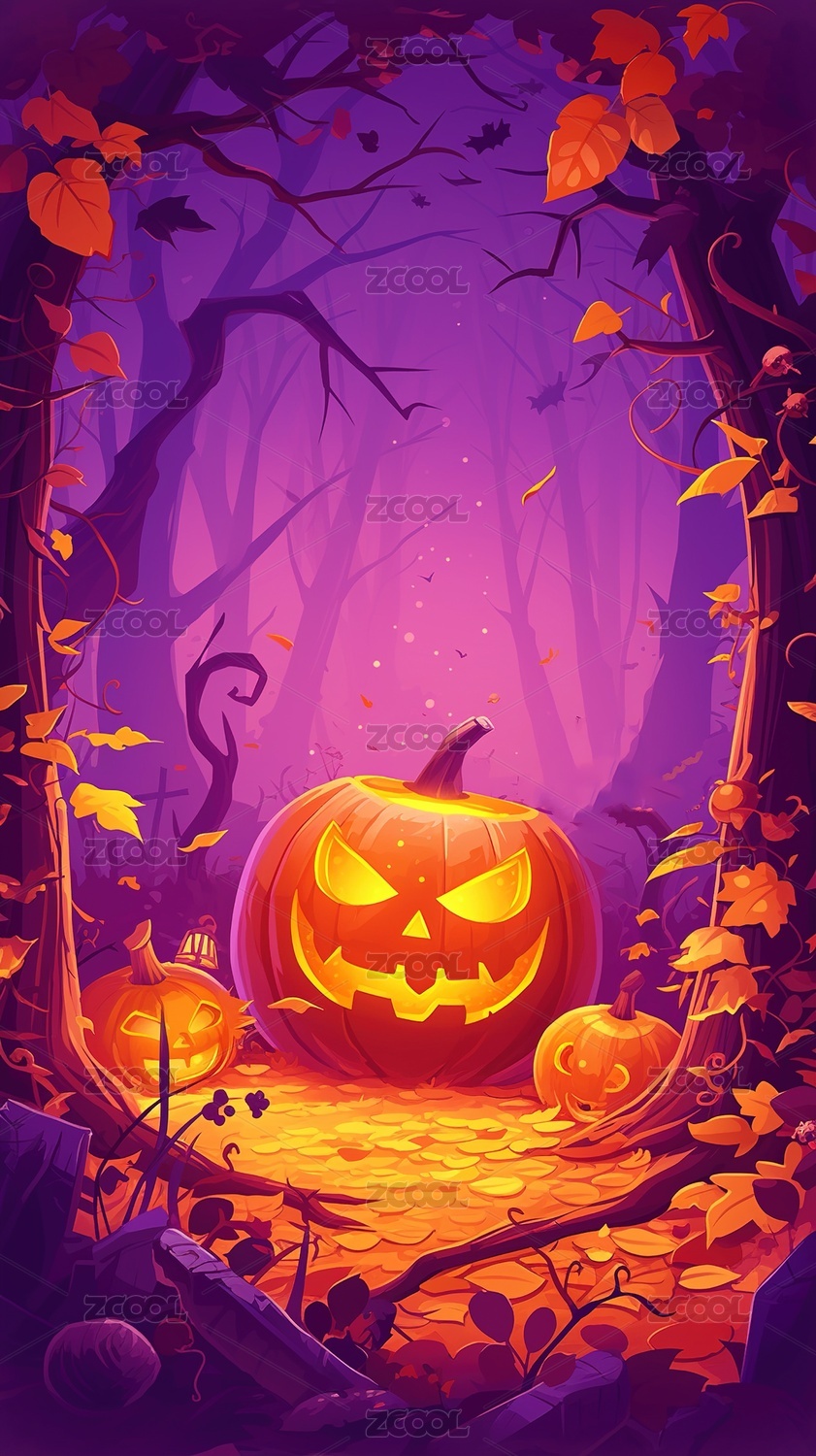 奇幻万圣南瓜主题插画场景