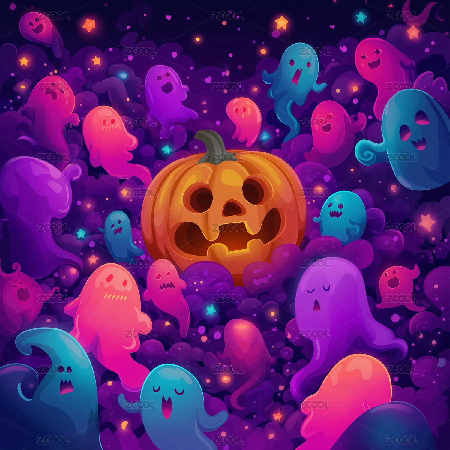 奇幻萌趣万圣节幽灵南瓜插画