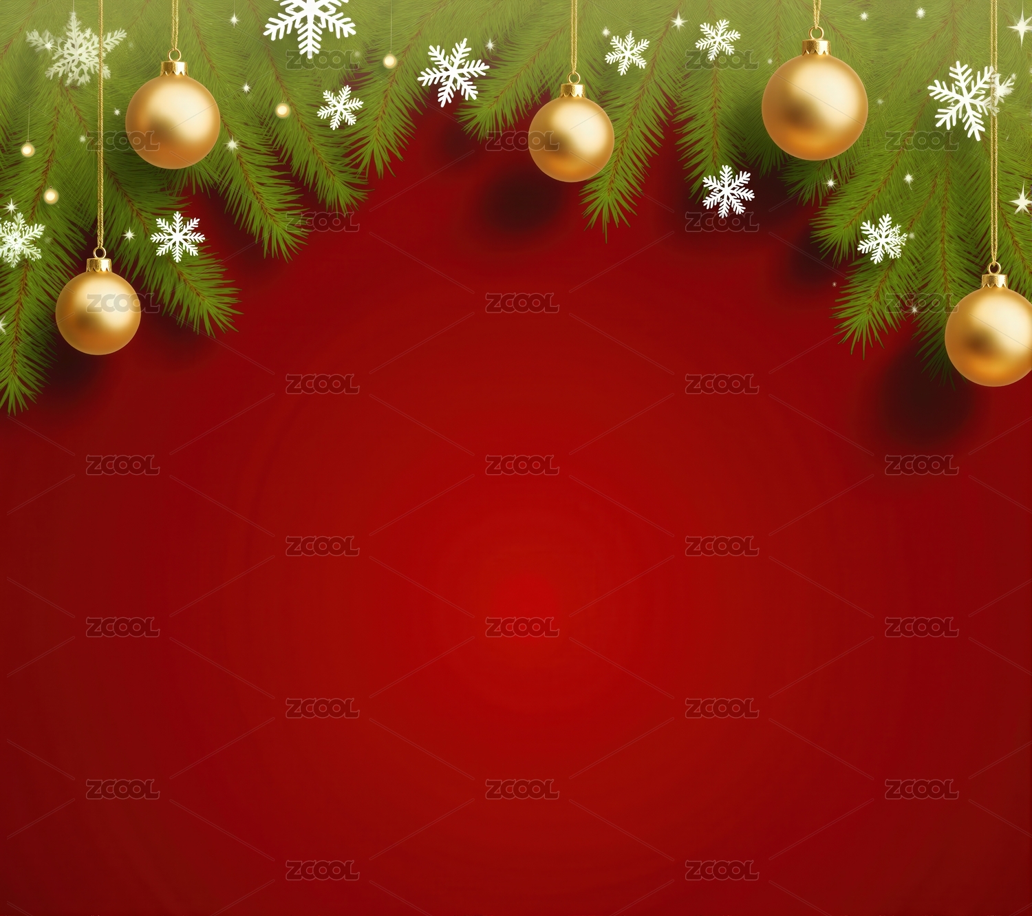 圣诞节日的温馨留白 冬日松枝与节日彩球