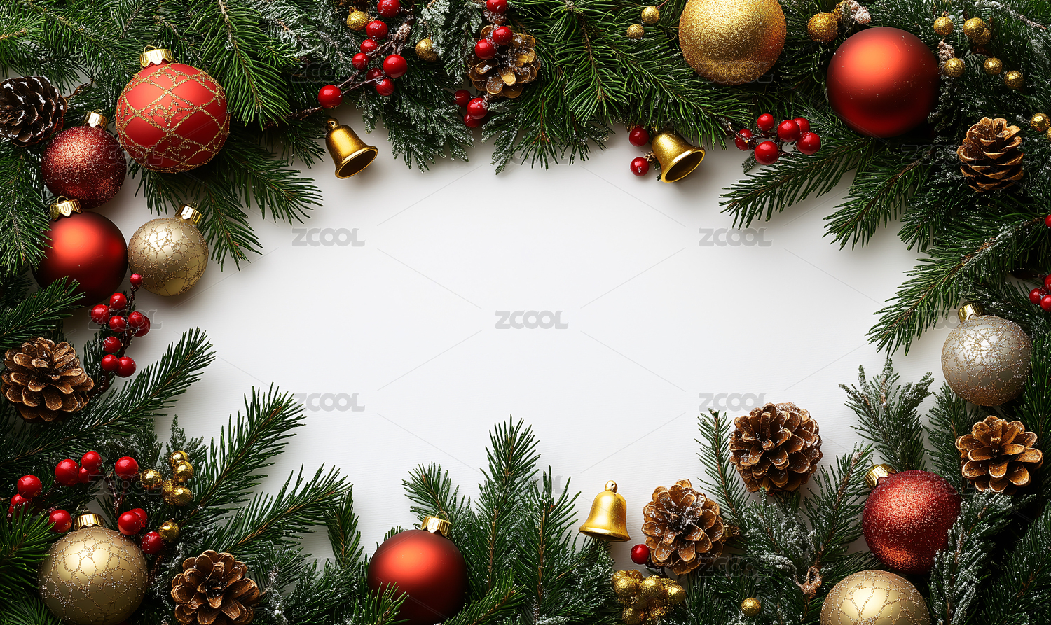 圣诞,装饰,松枝,节日,白色,背景,亮片,传统,新年,庆祝