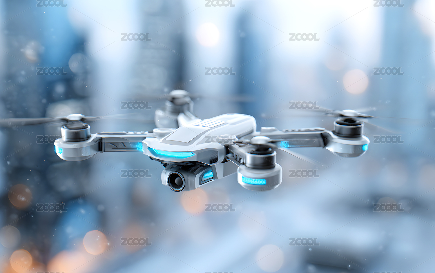 科技智能无人机飞越城市插图
