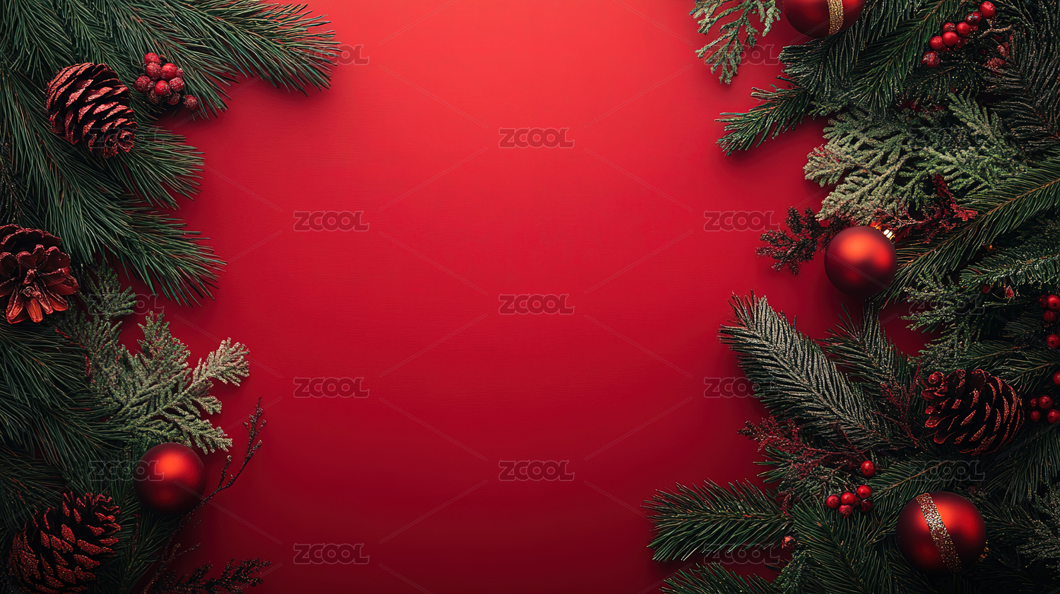 正上方红色背景下圣诞装饰的照片