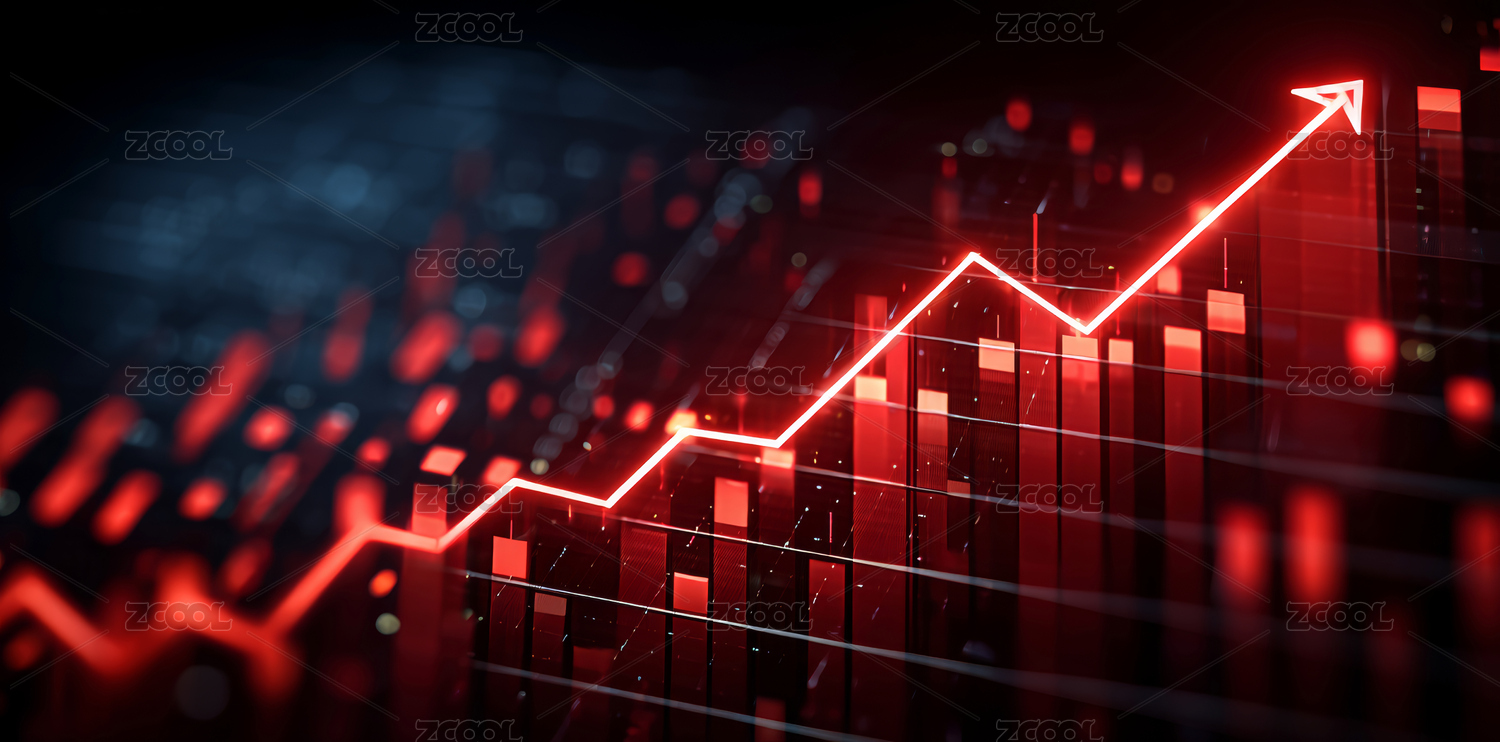 数据增长的红色箭头