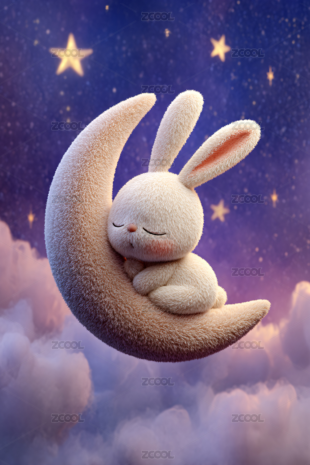 兔子,月亮,卡通,可爱,梦幻,睡眠,云朵,星星,夜晚,治愈