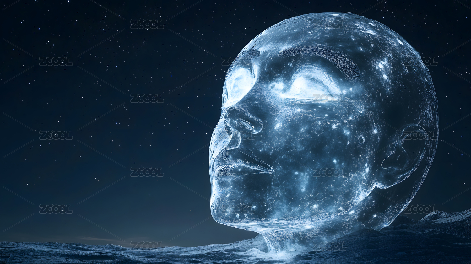 抽象人头云雾涌动蓝色氛围