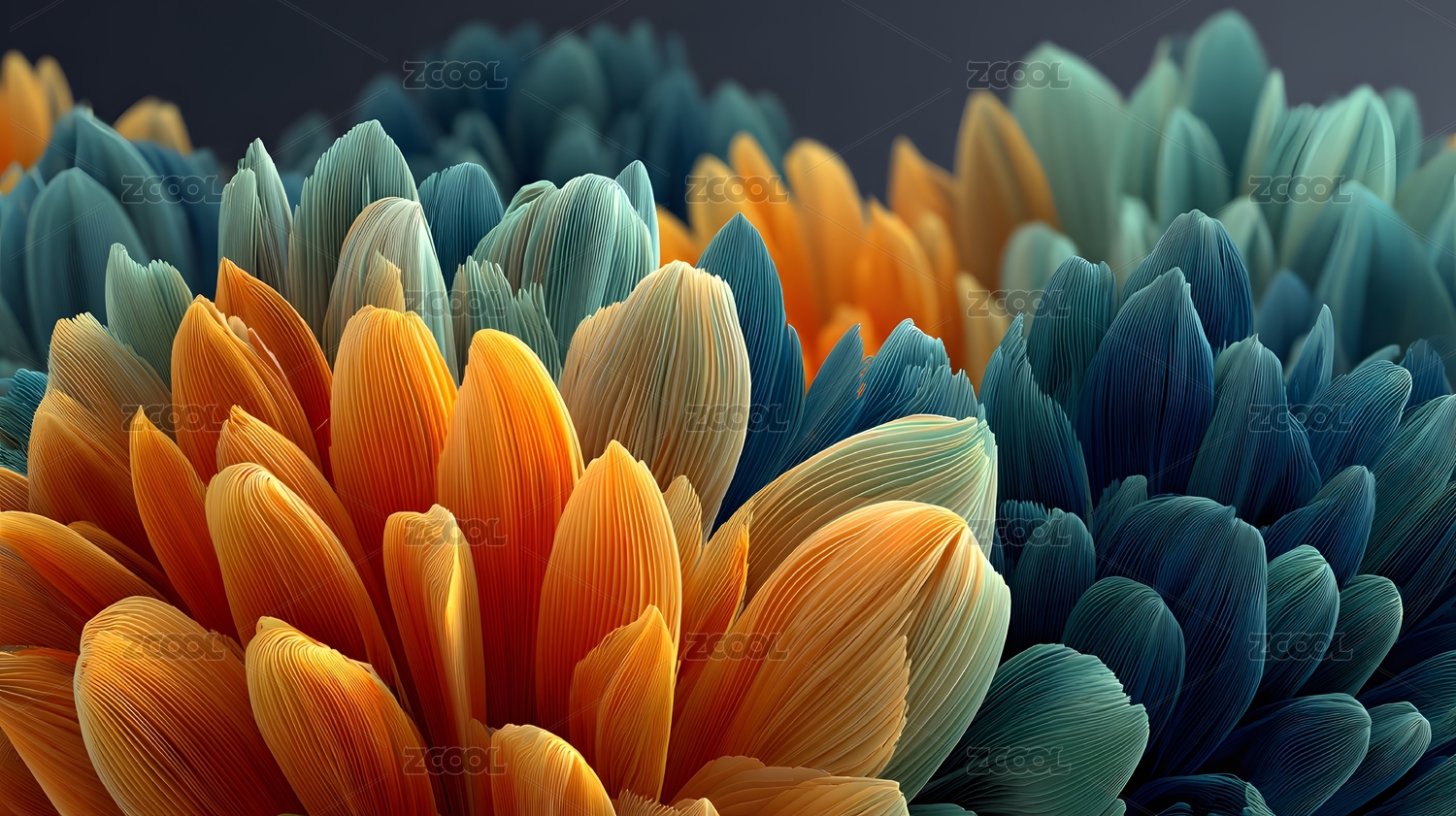 流体花瓣海洋蓝橙色调
