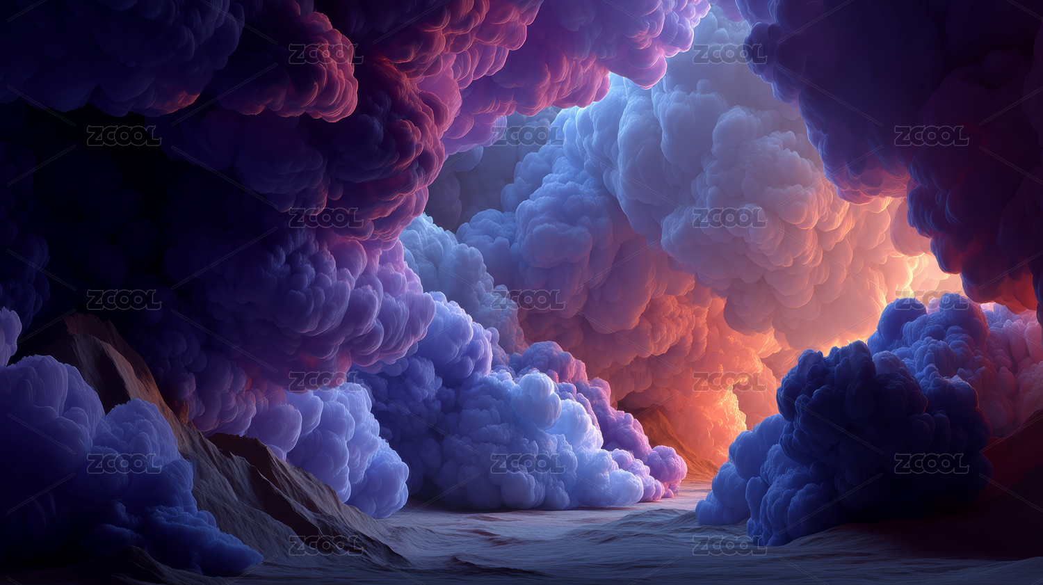 抽象彩色粉尘在纯色背景下爆炸粉尘喷溅背景