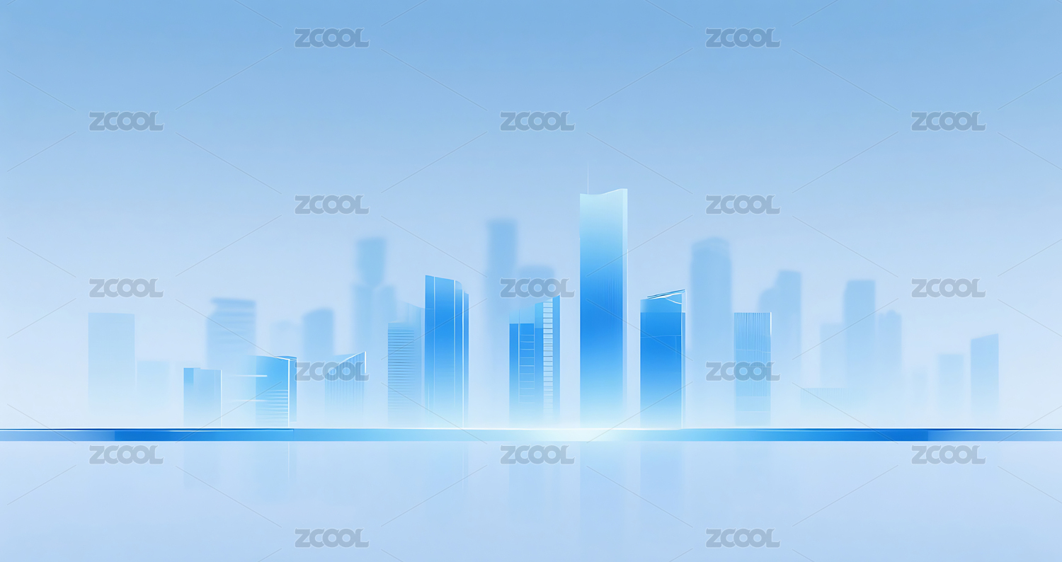 极简蓝色抽象现代感城市天际线图