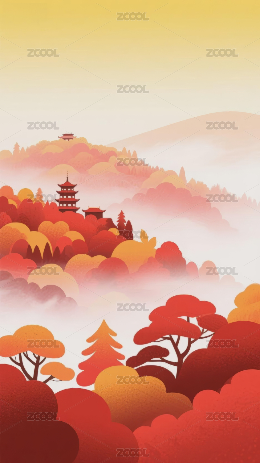 静谧, 树木, 自然, 温暖, 色彩, 宁静,秋天, 乡村, 山丘, 雾气
