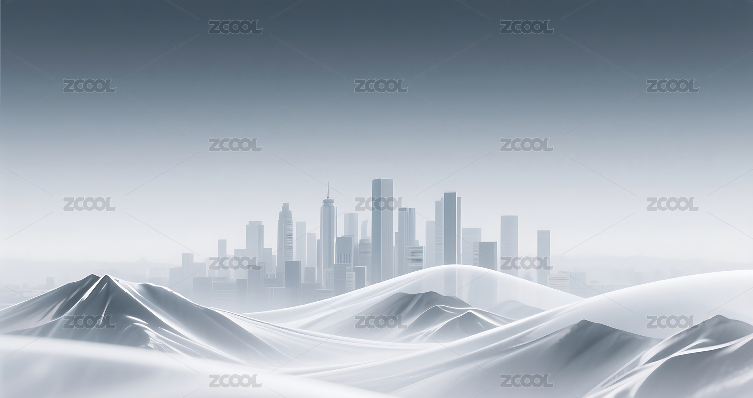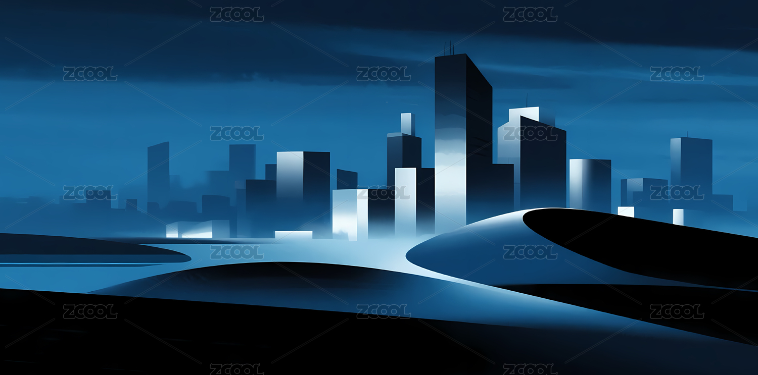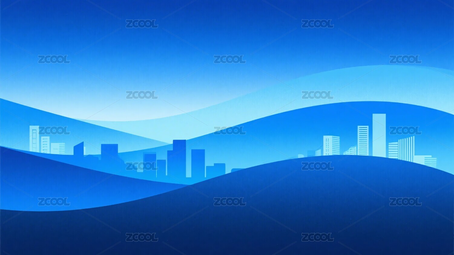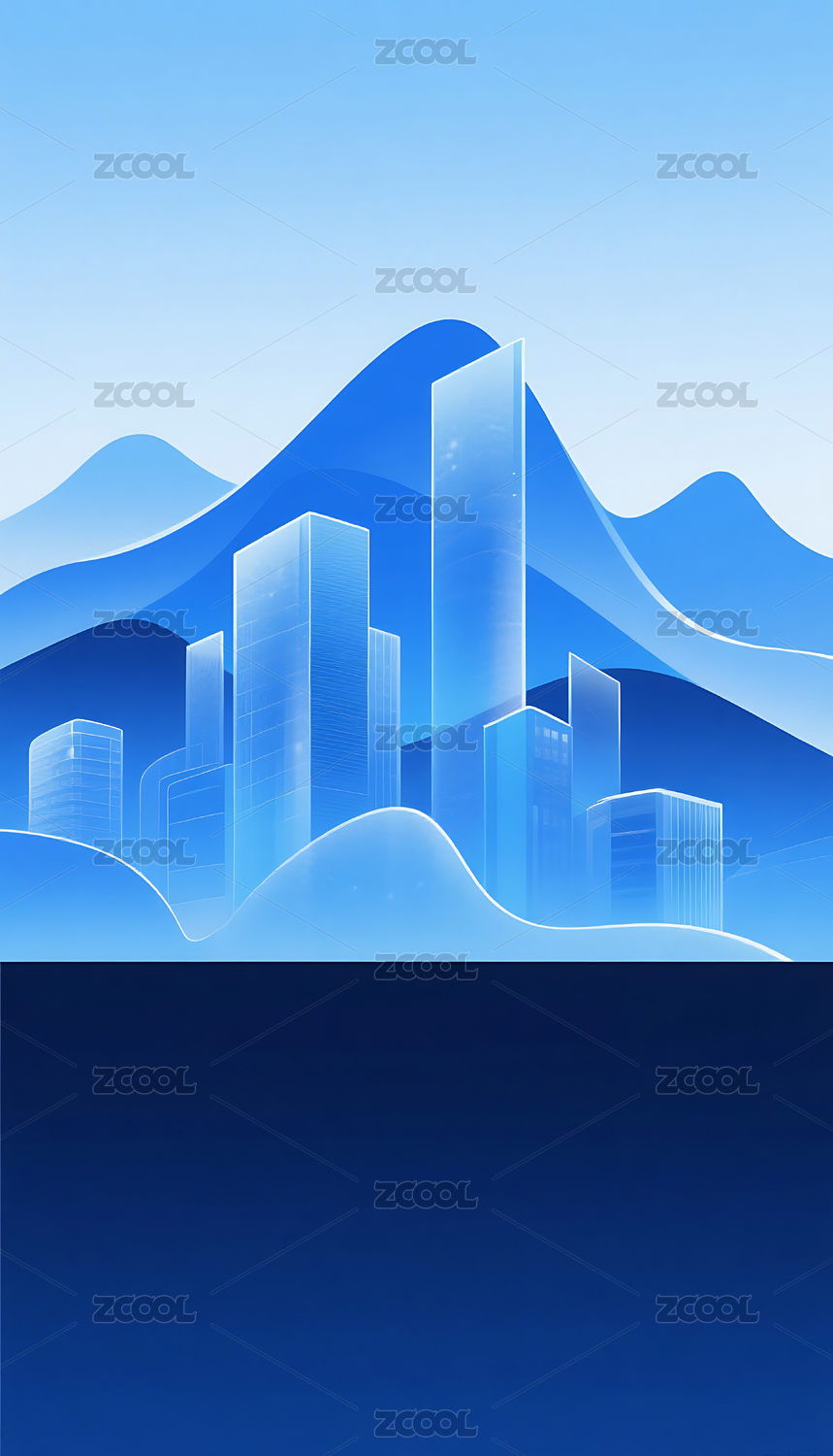 流畅的蓝色渐变波浪线条玻璃城市建筑
