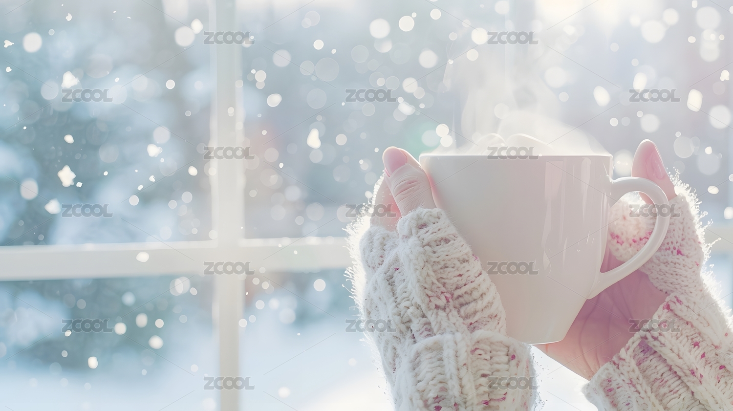 装饰,自然,温暖,毛绒熊,茶杯,窗户,雪花,窗帘,花朵,冬季