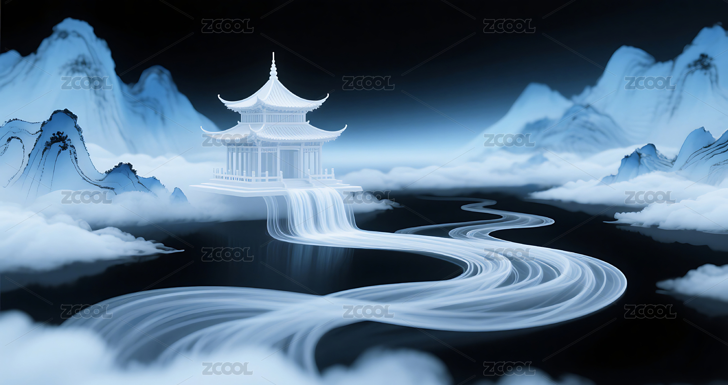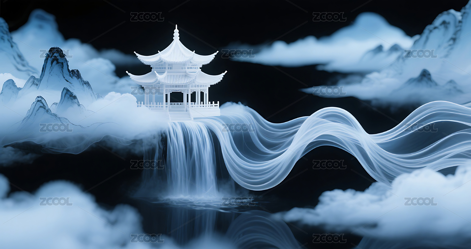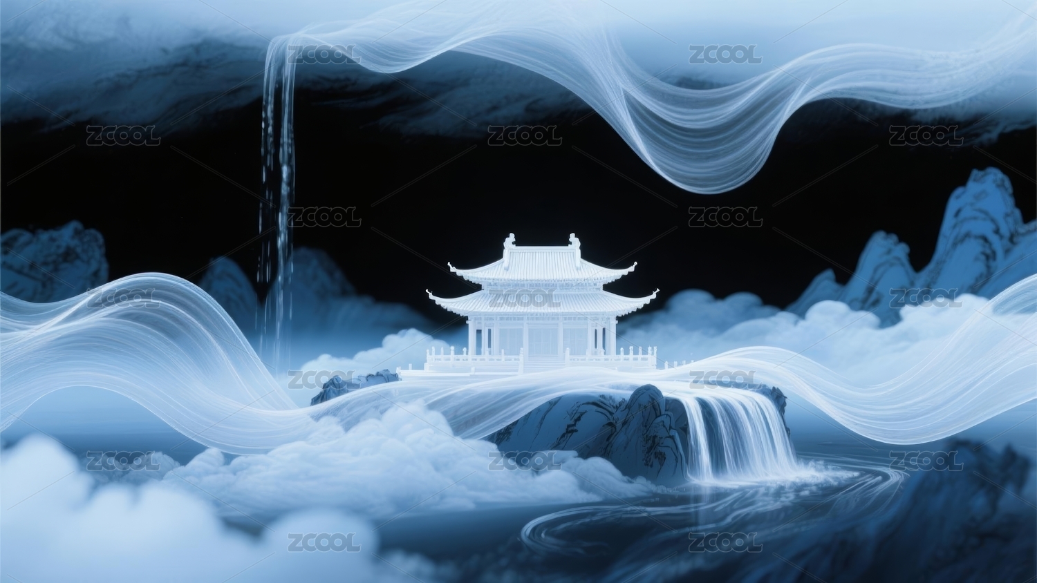 瀑布, 云雾, 自然, 风景, 美丽, 仙境, 宏伟, 山峦, 流水, 景观