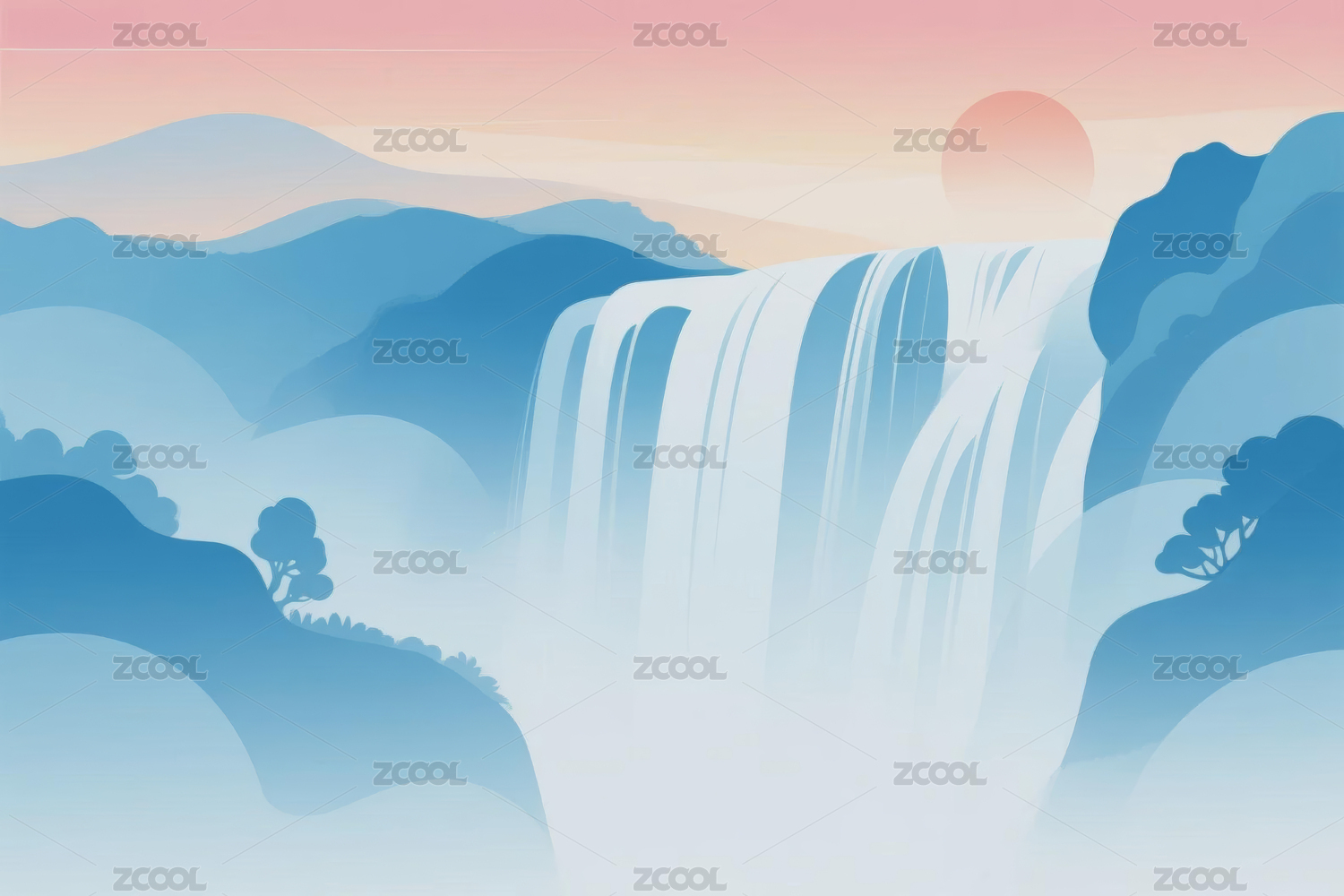 山水瀑布晨曦