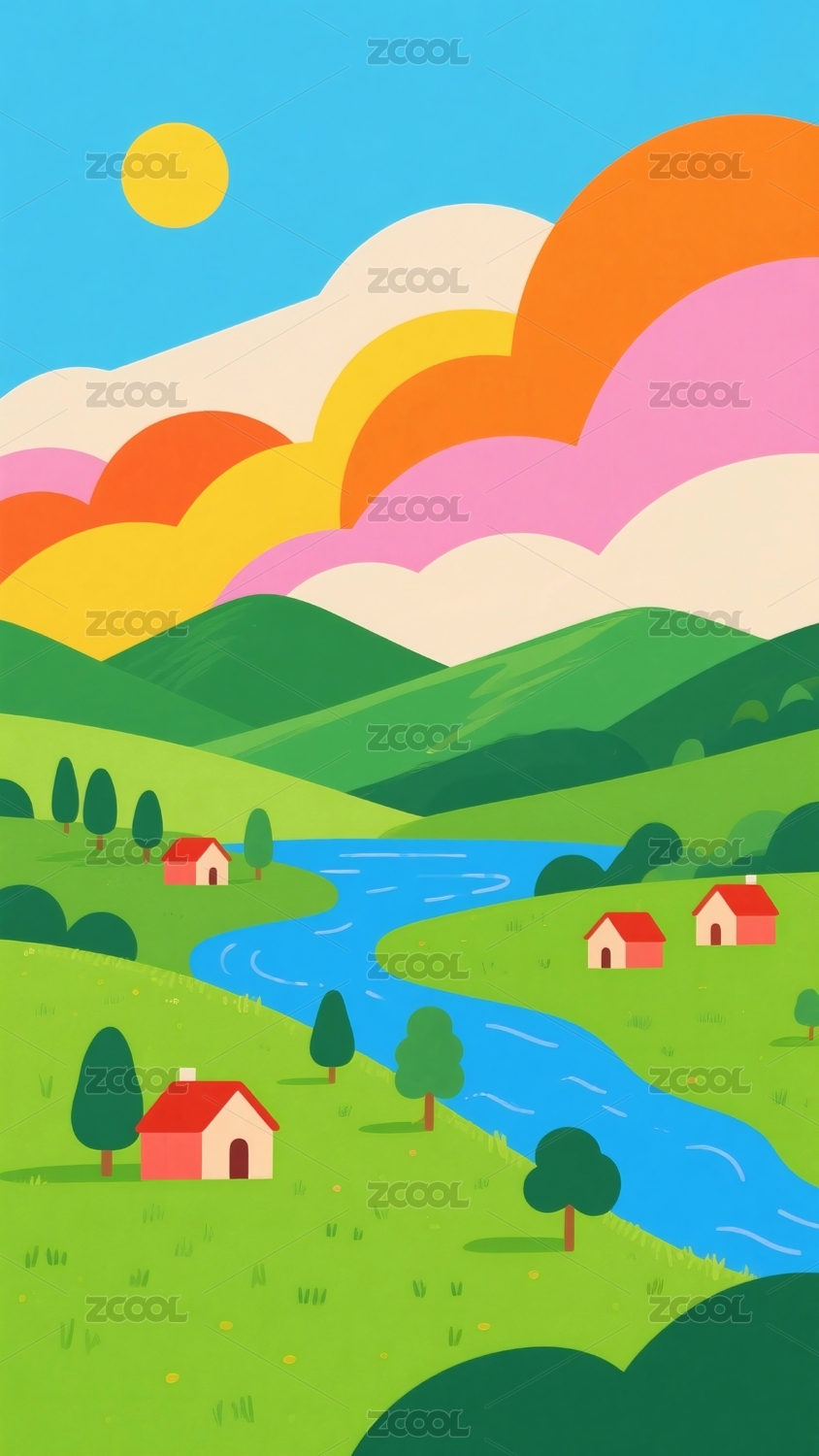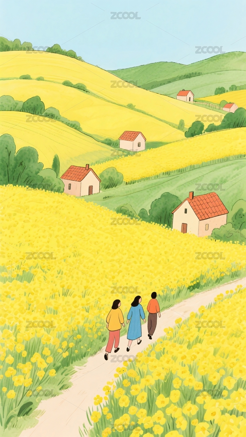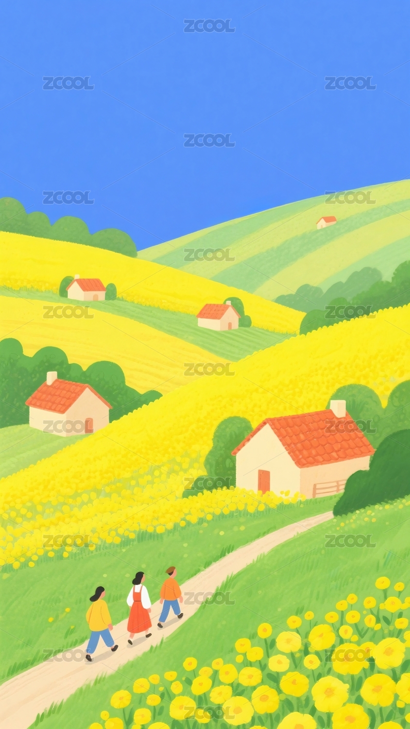 草地,绿色,阳光,远景,近景,自然,田野,生活,行人,树木