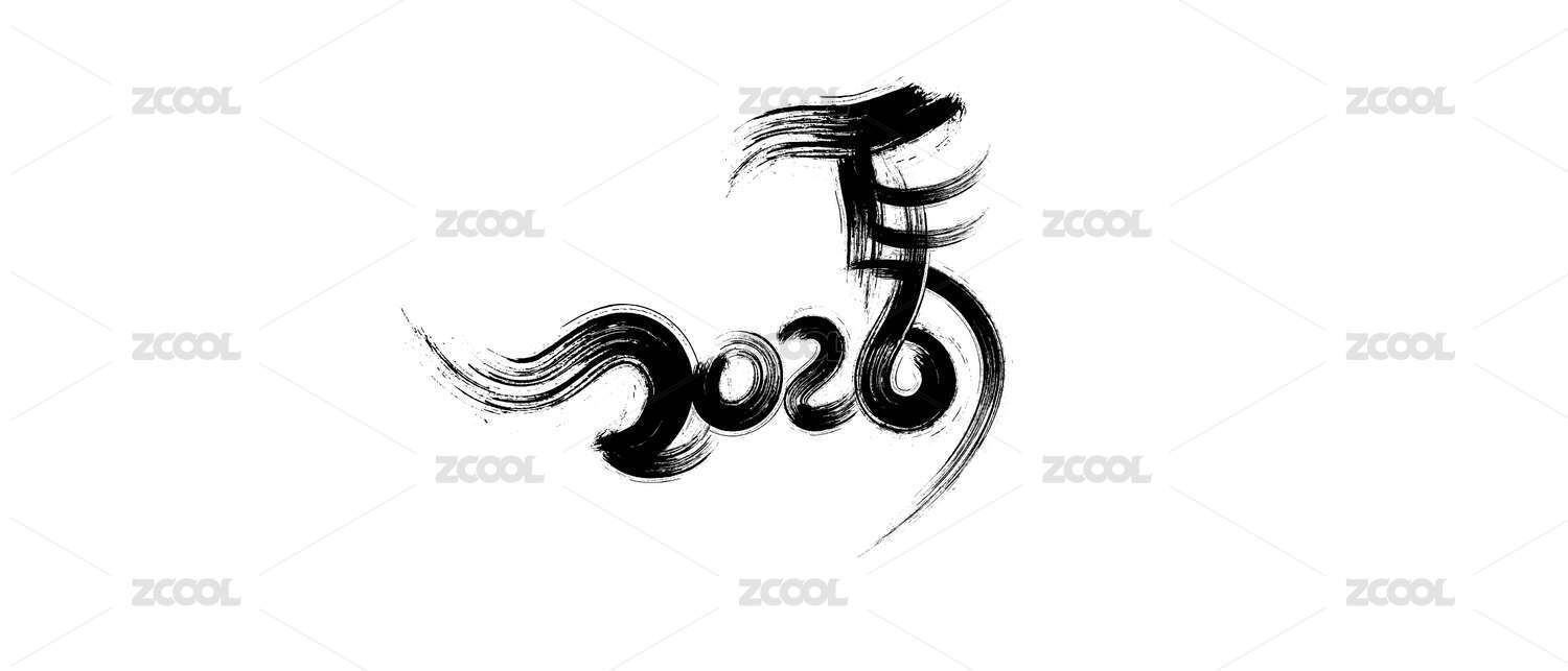 2020和鼠年结合的水墨书法笔触图形