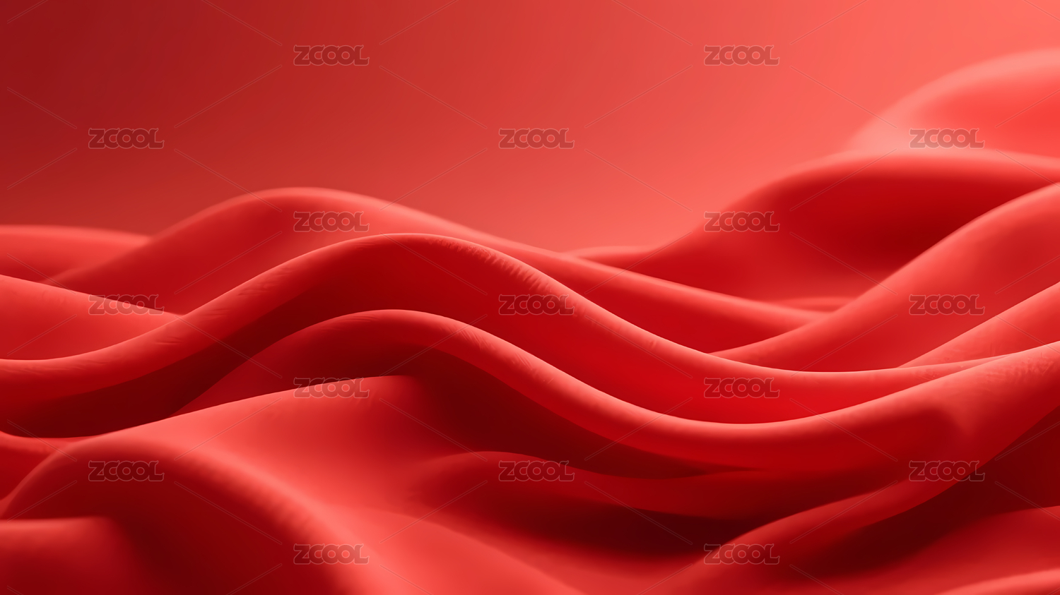 红色丝绸褶皱呈现流畅曲线唯美雅致