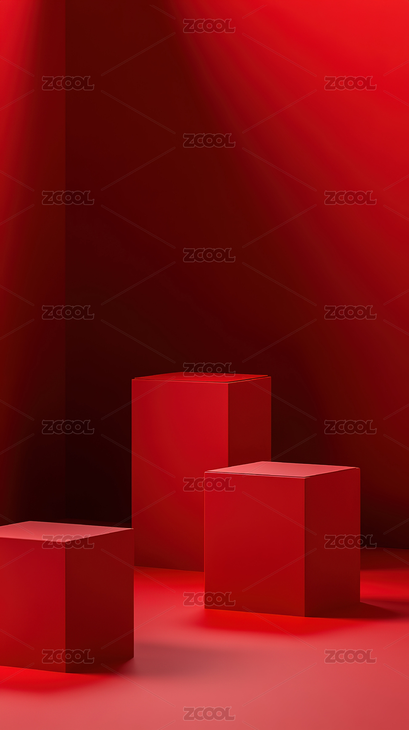 红色几何造型展示台背景