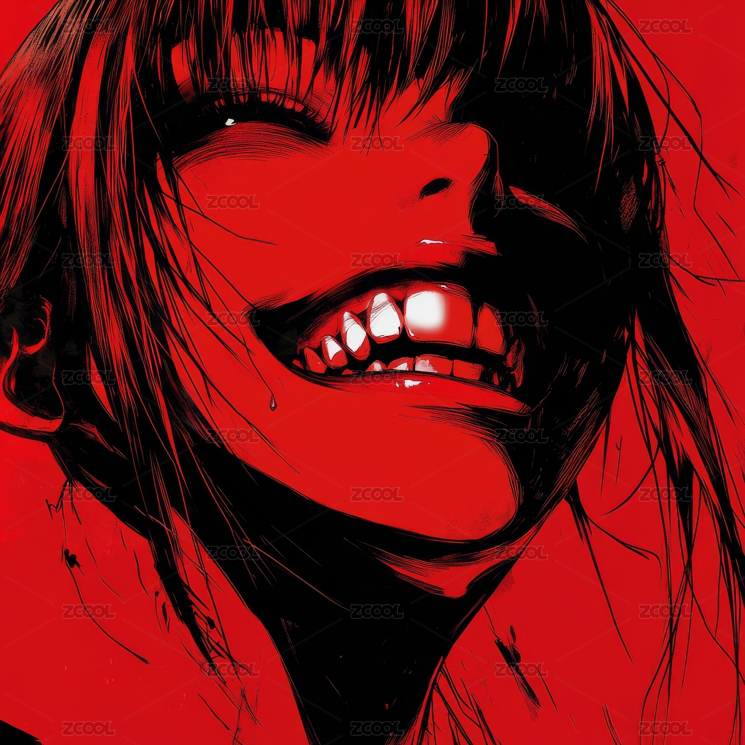 一个红眼睛和尖牙的吸血鬼女人的插图