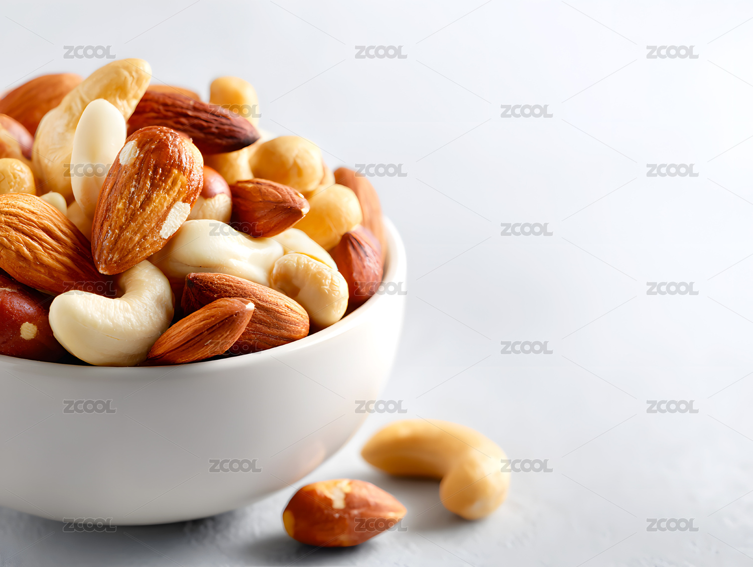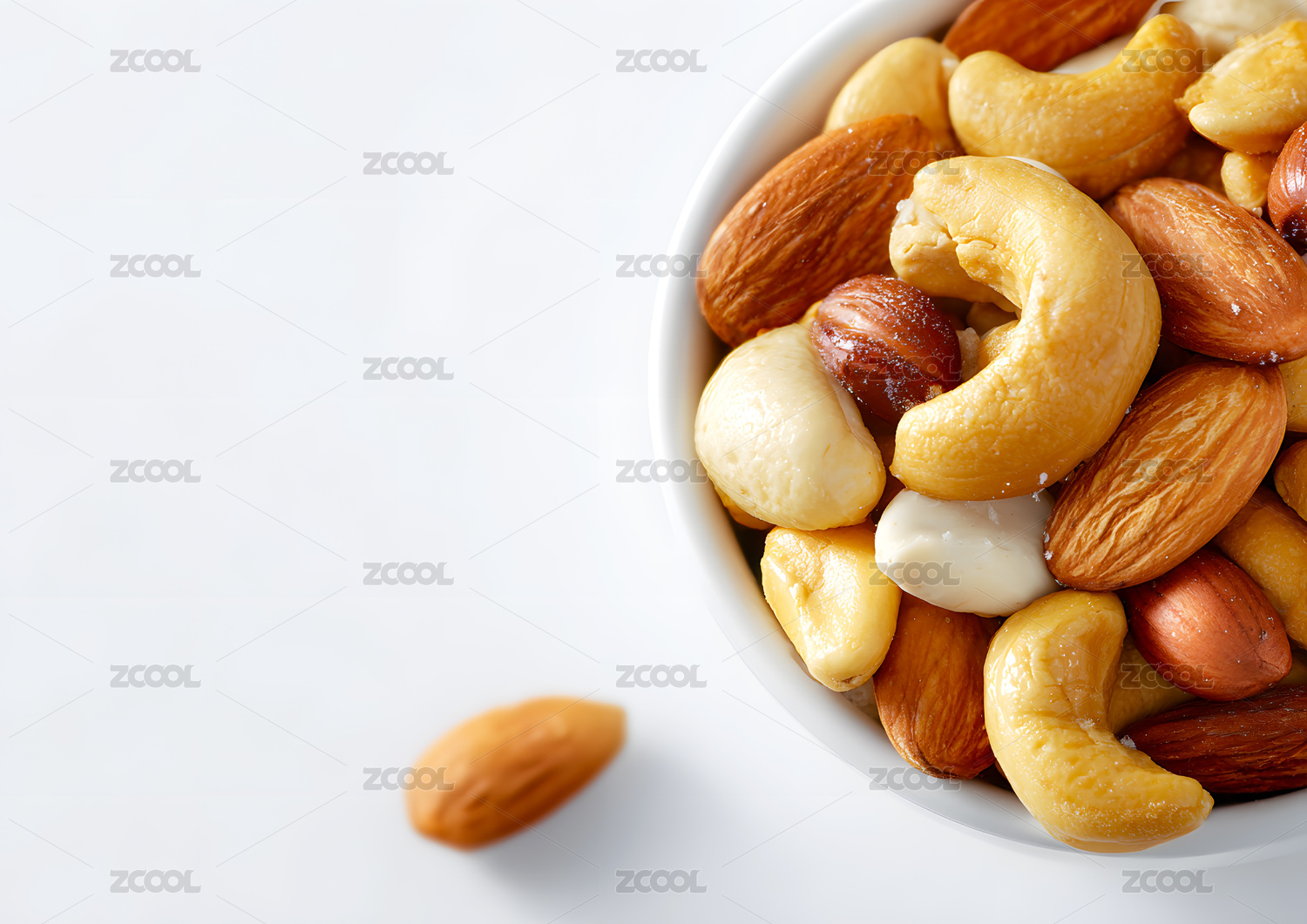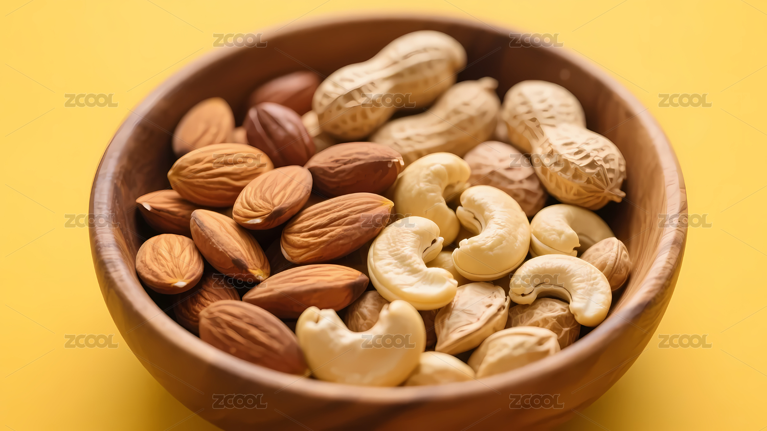 坚果,混合坚果,静物,美食,食材,摄影,实拍,自然,绿色背景,高清