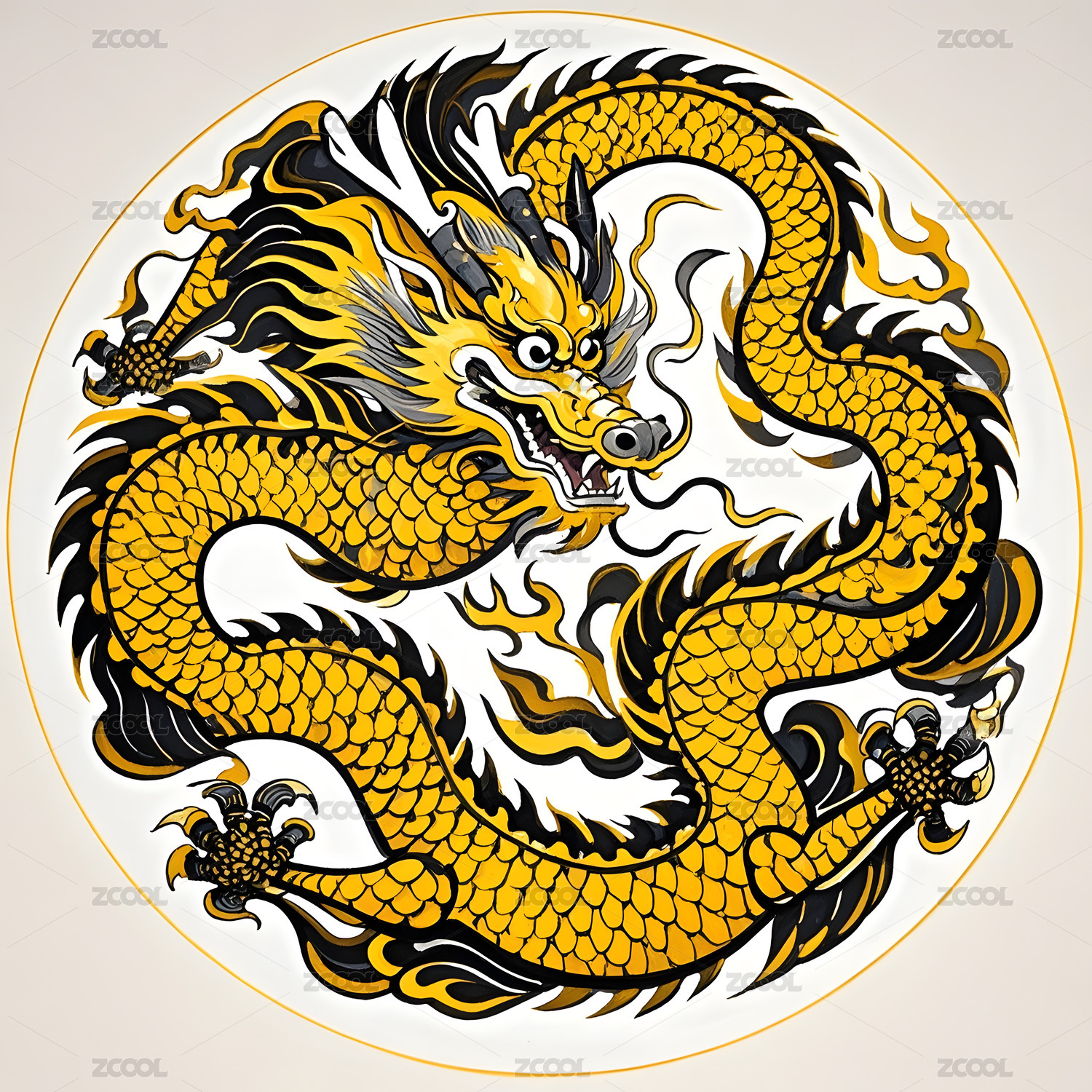 黄底金龙圆形传统图案