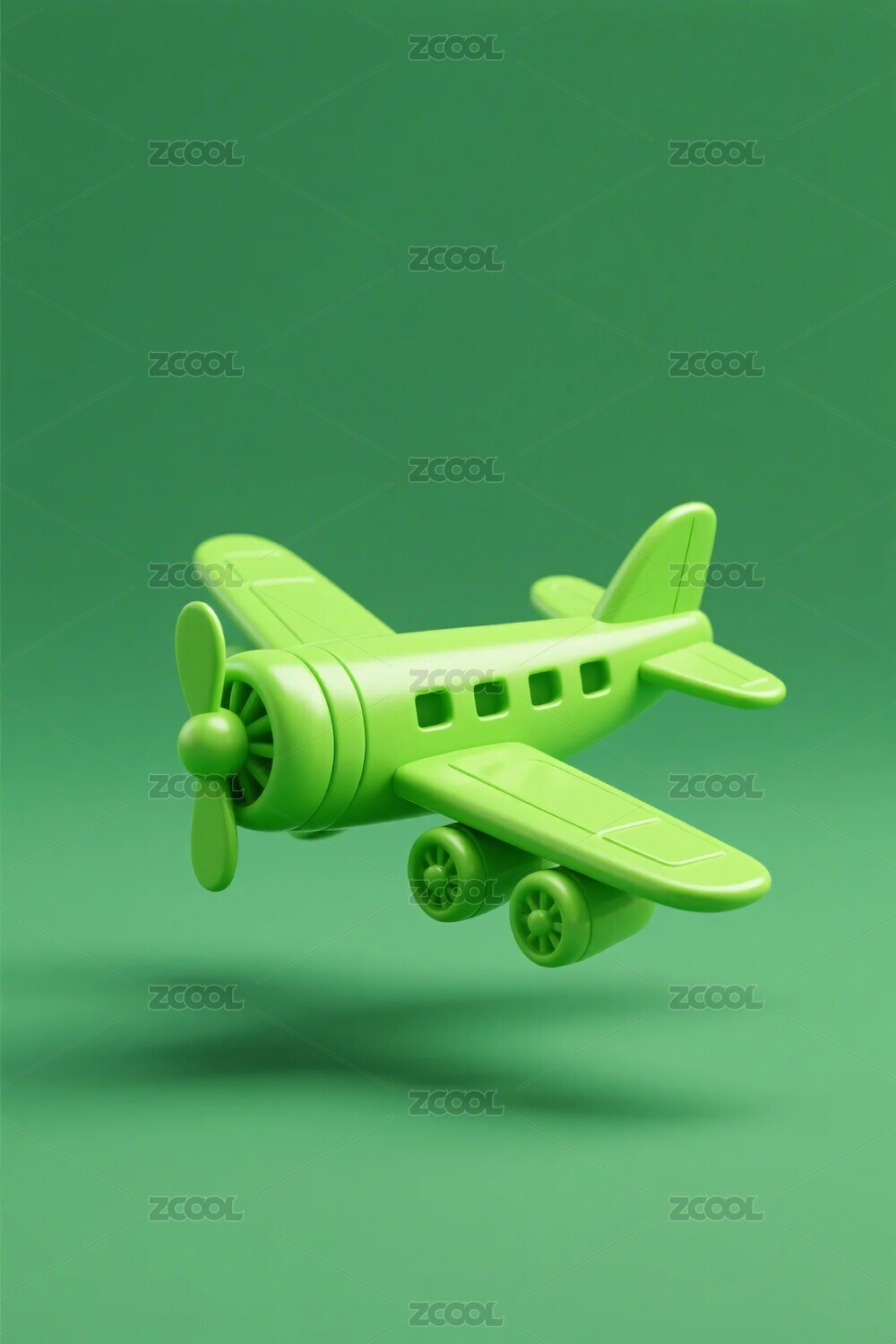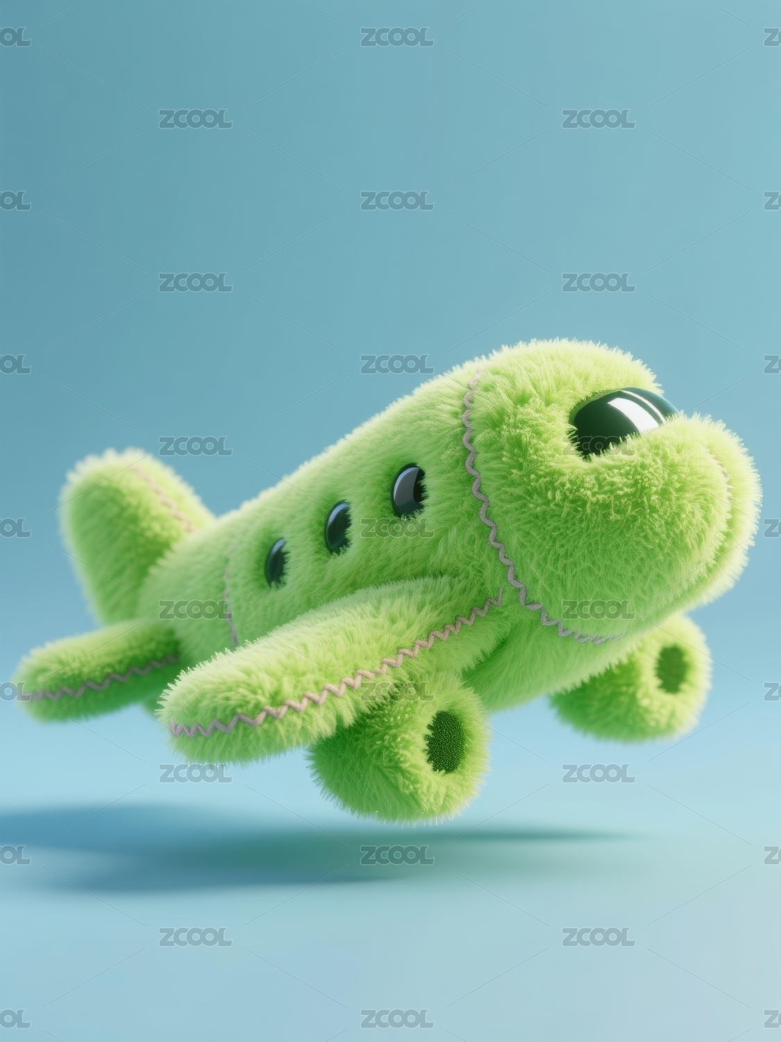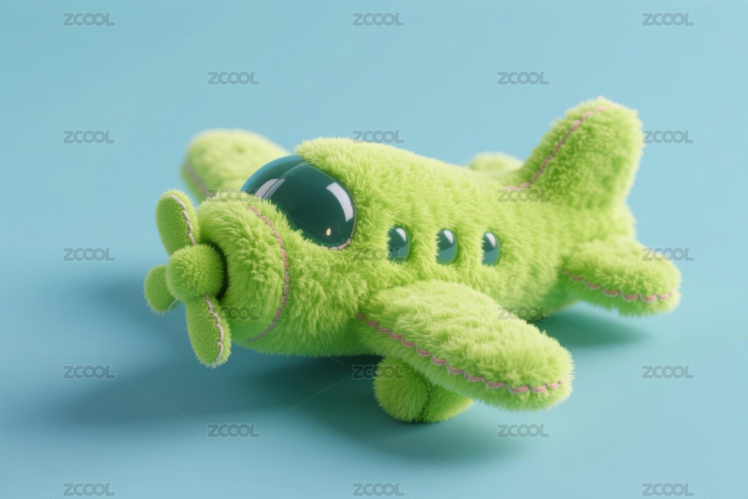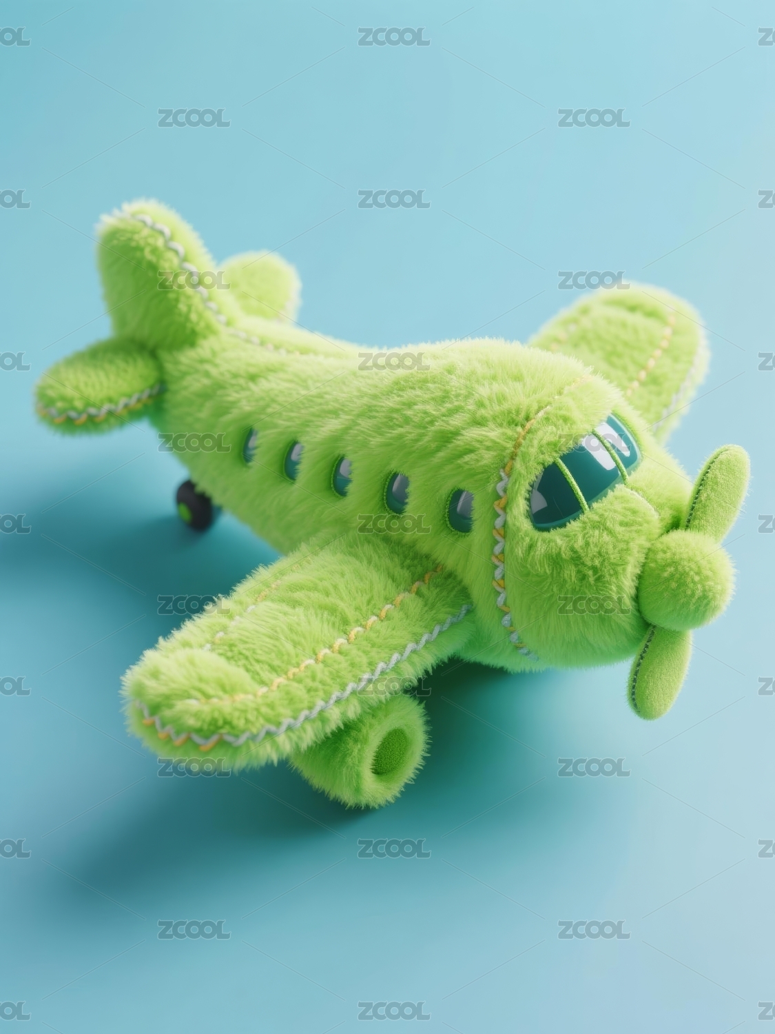 主视觉,商业,壁纸,场景,创意,毛绒,飞机,柔和感,玩具,绿色