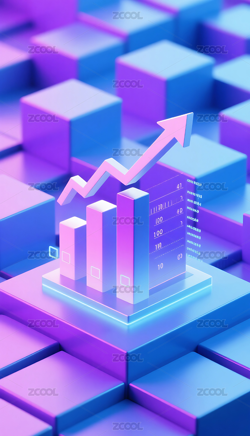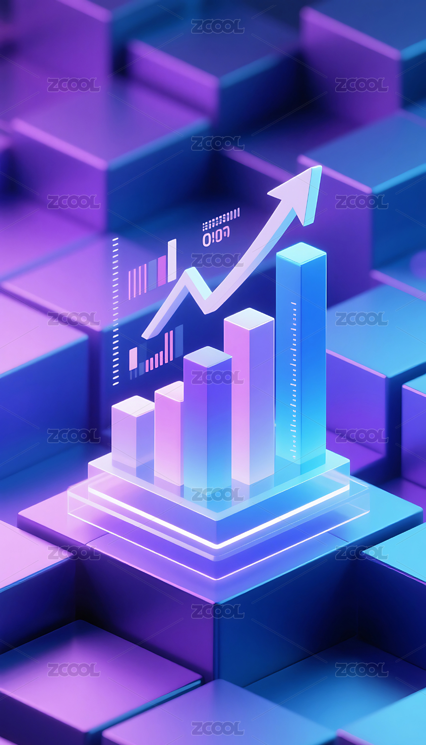 紫蓝色几何金融经济柱状图插画背景壁纸