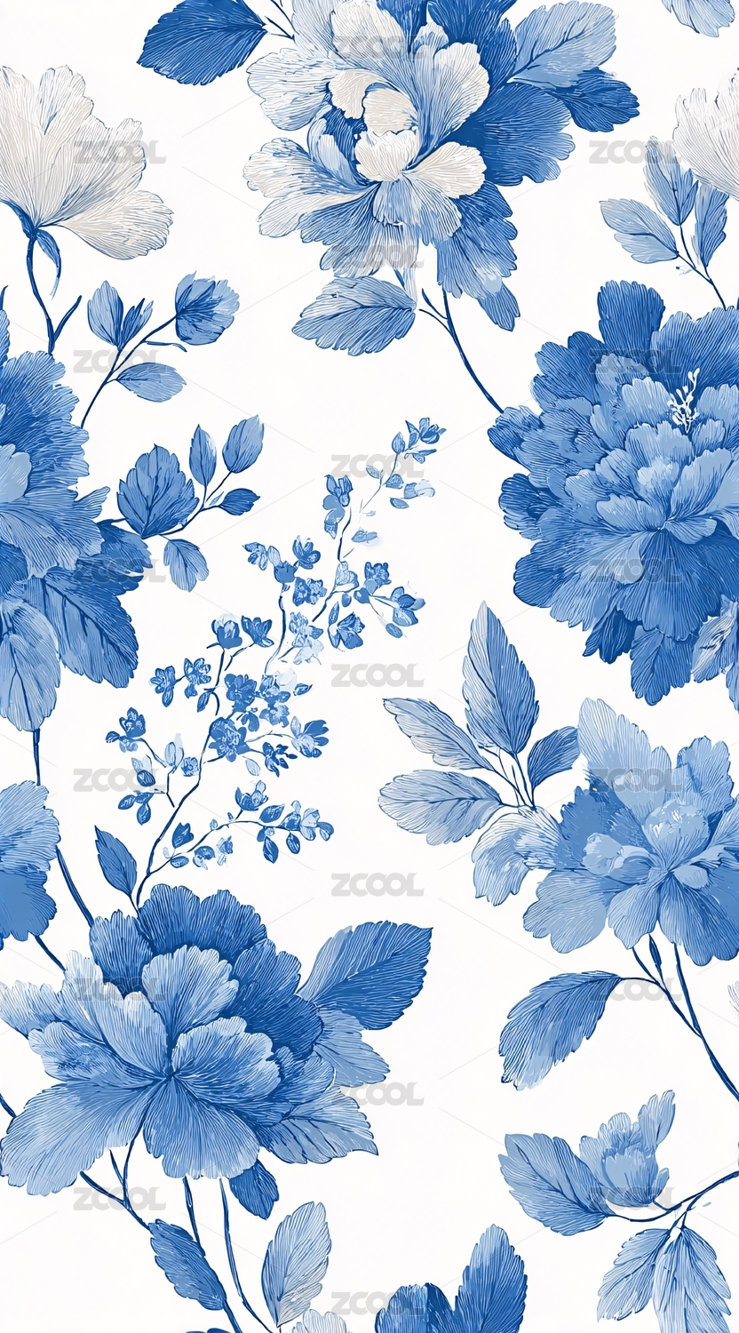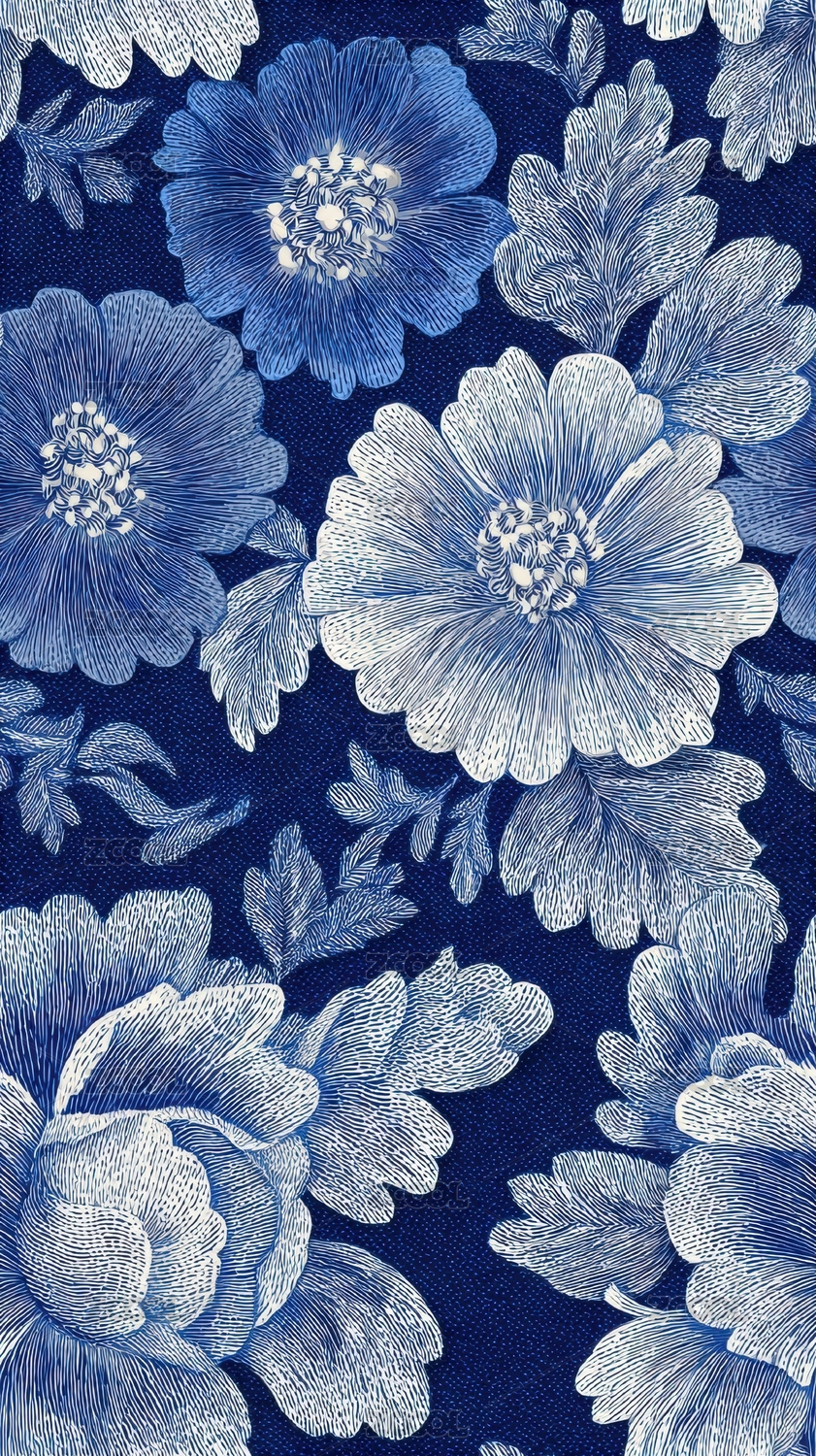 自然,花卉,蓝色,白色,图案,背景,花朵,叶子,优雅,装饰