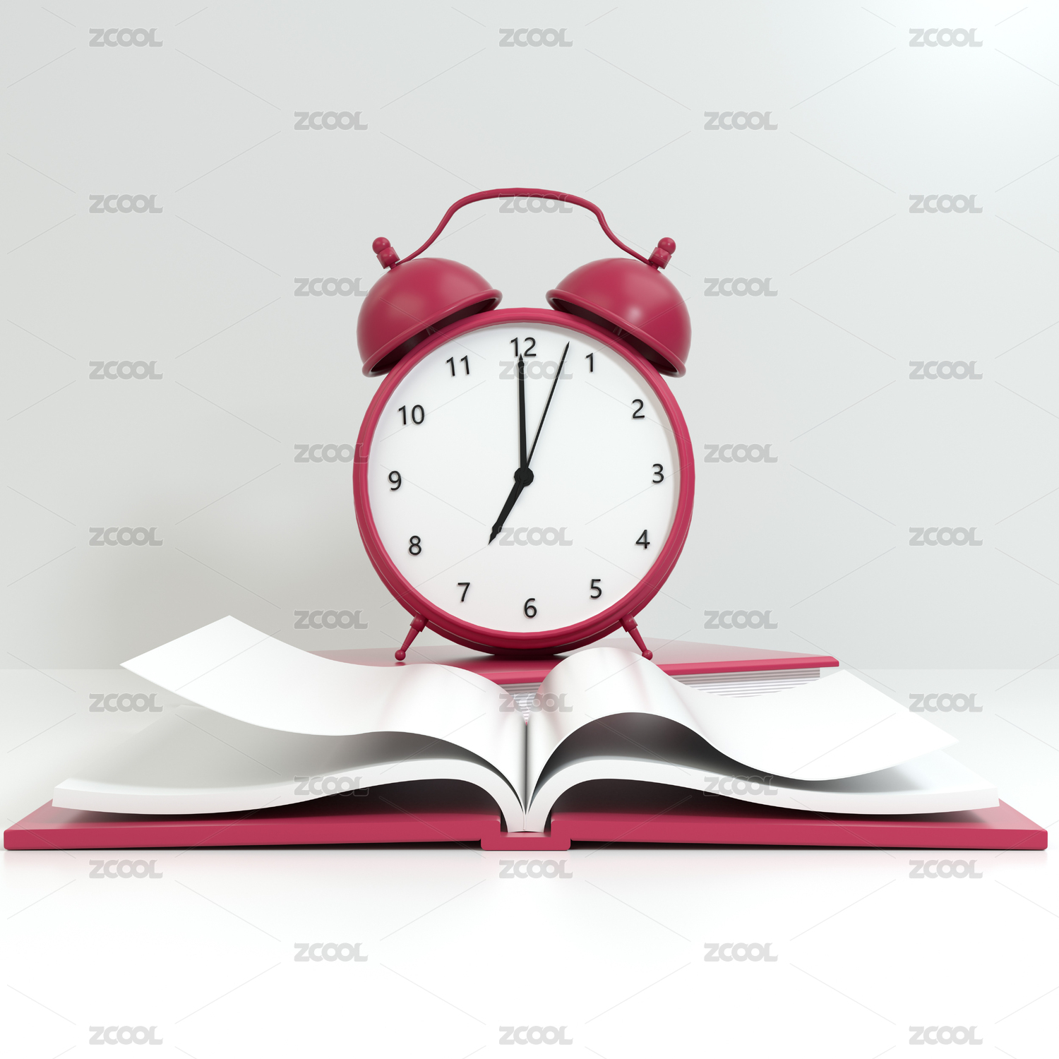 3D卡通书本和闹钟插画