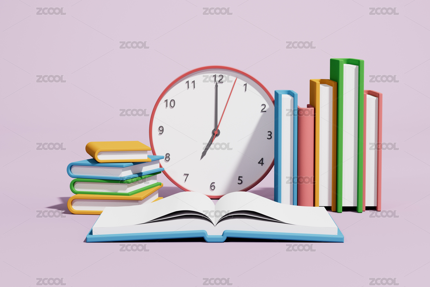 彩色书本闹钟静物组合