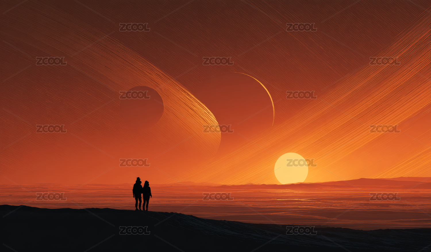 风景,星空,梦幻,浪漫,宇宙,夜晚,静谧,窗户,日落,人物
