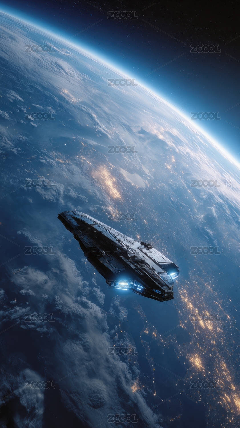 太空飞船飞越地球夜景