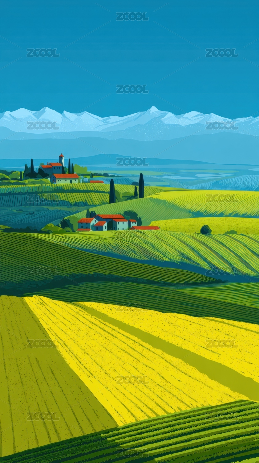 自然,环境,风景,和谐,蓝天,农舍,田野,乡村,色彩,宁静