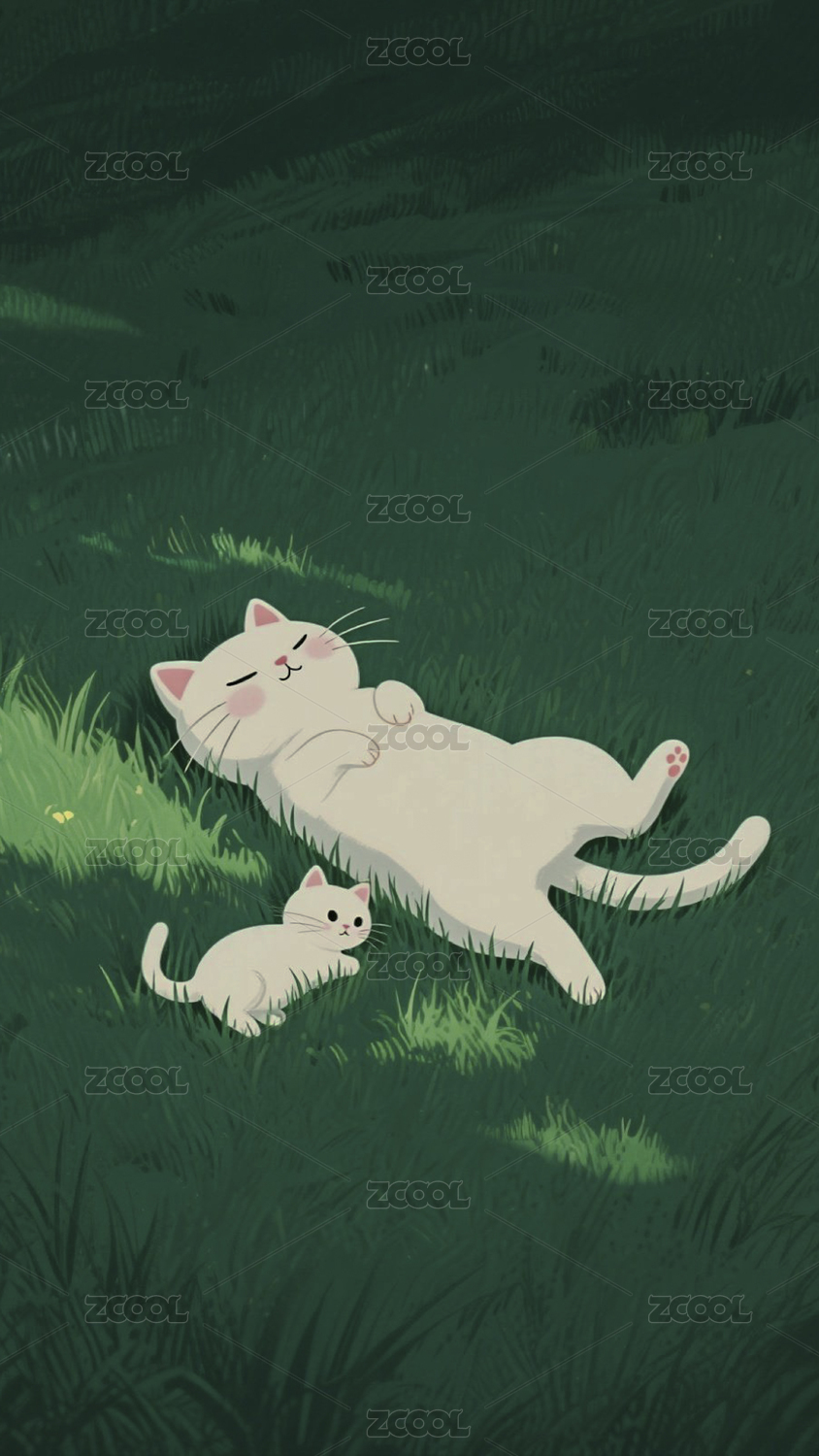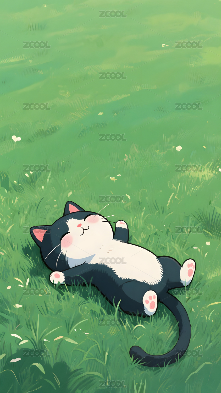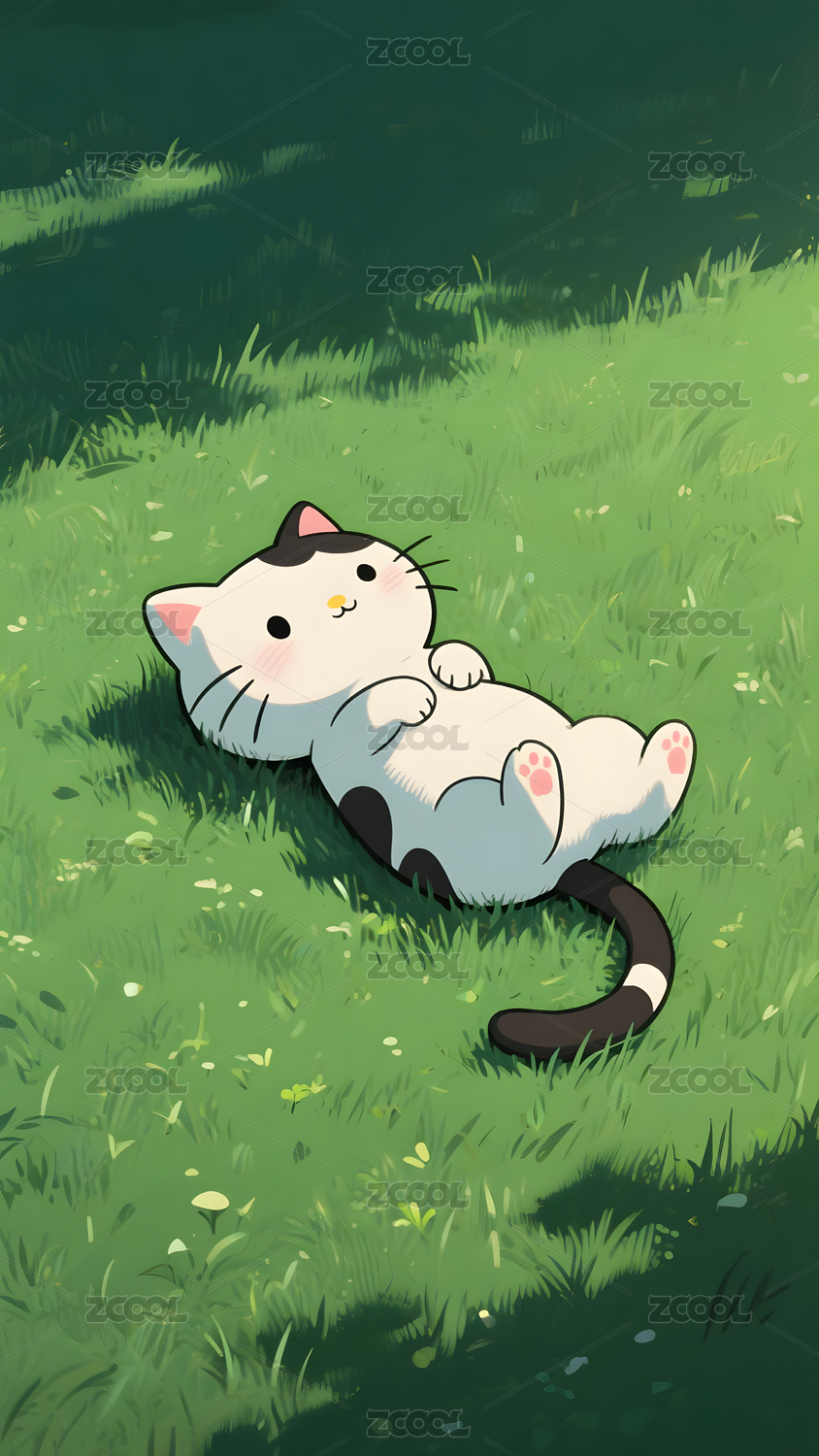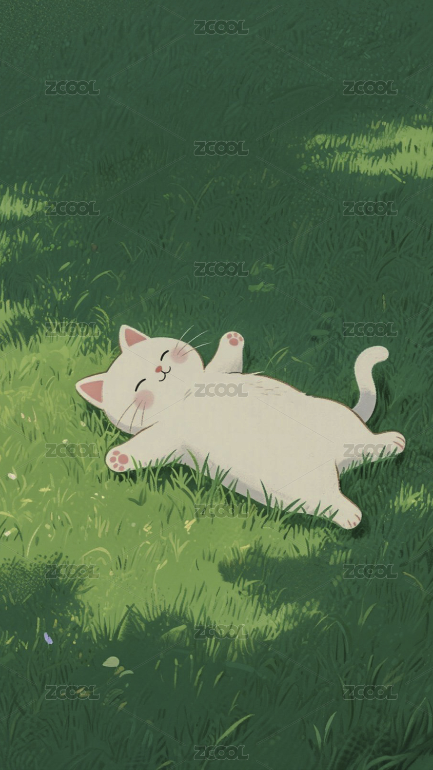 猫,草地,阳光,可爱,治愈,卡通,动画,绿色,休闲,放松