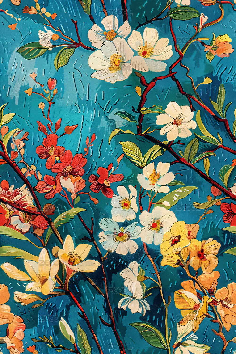 数码印象派花草装饰抽象图形海报背景