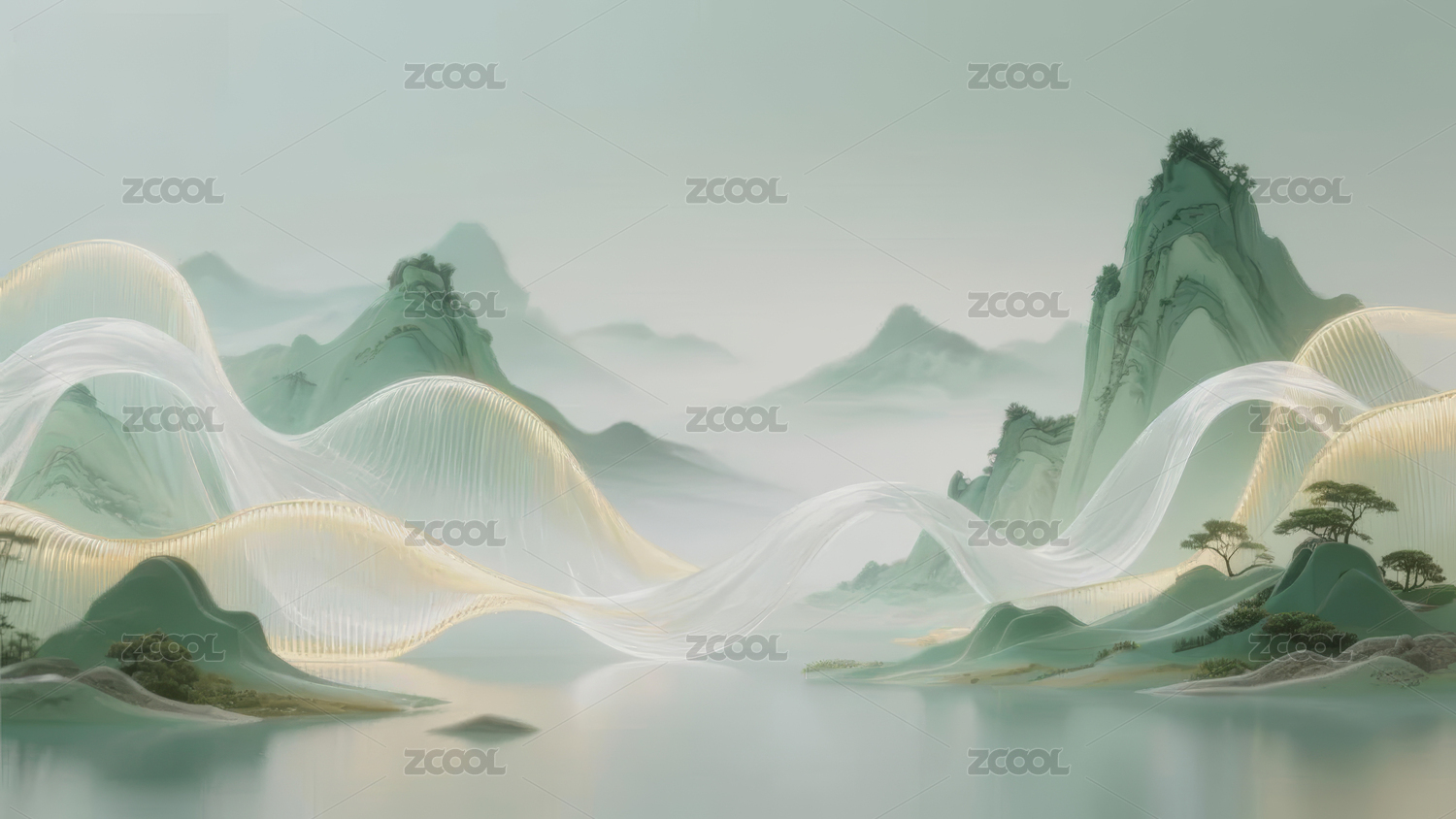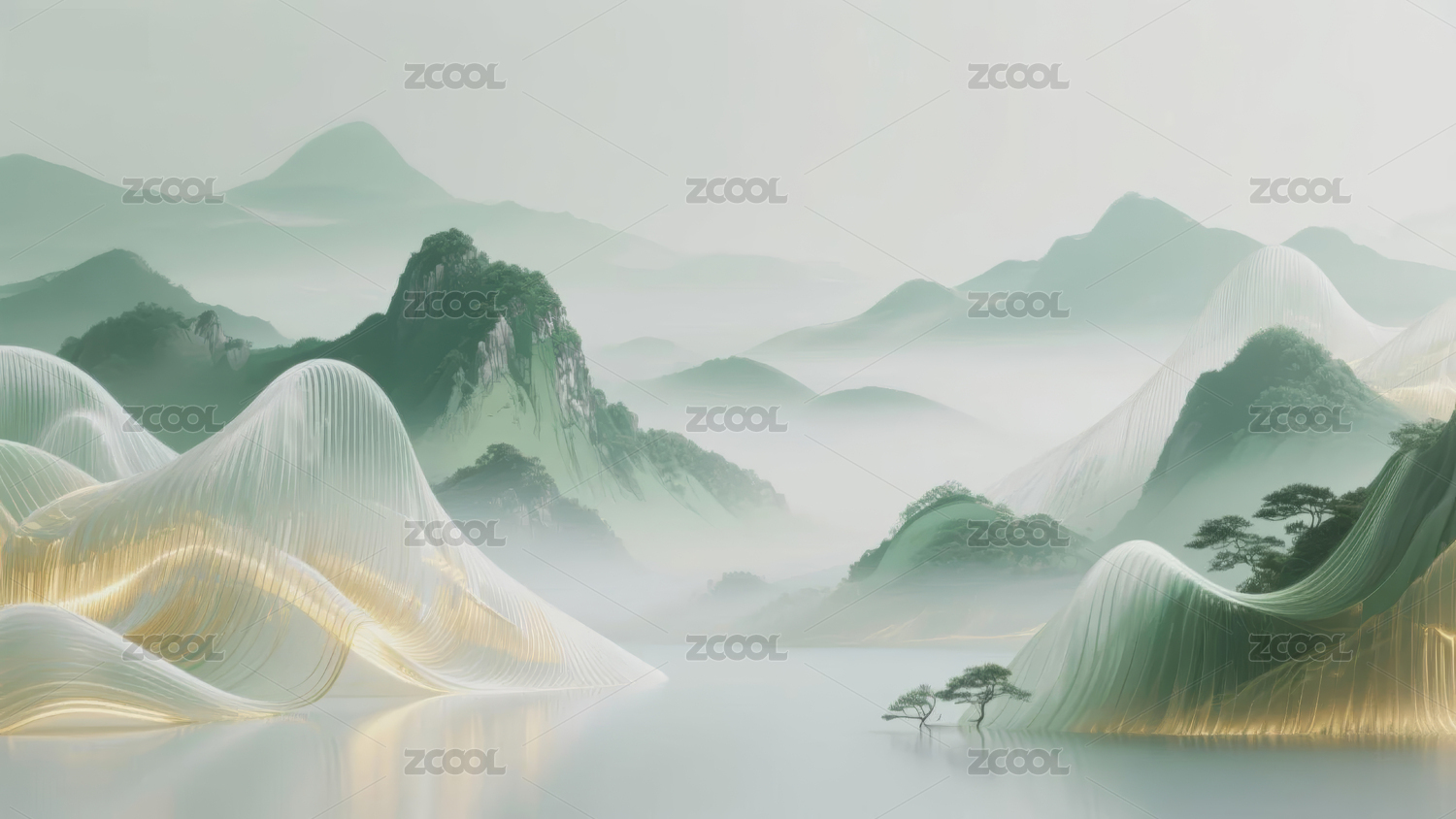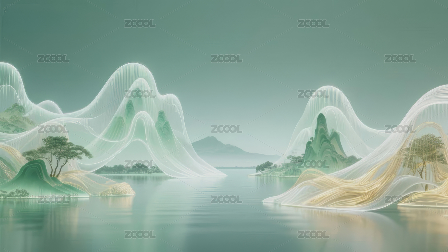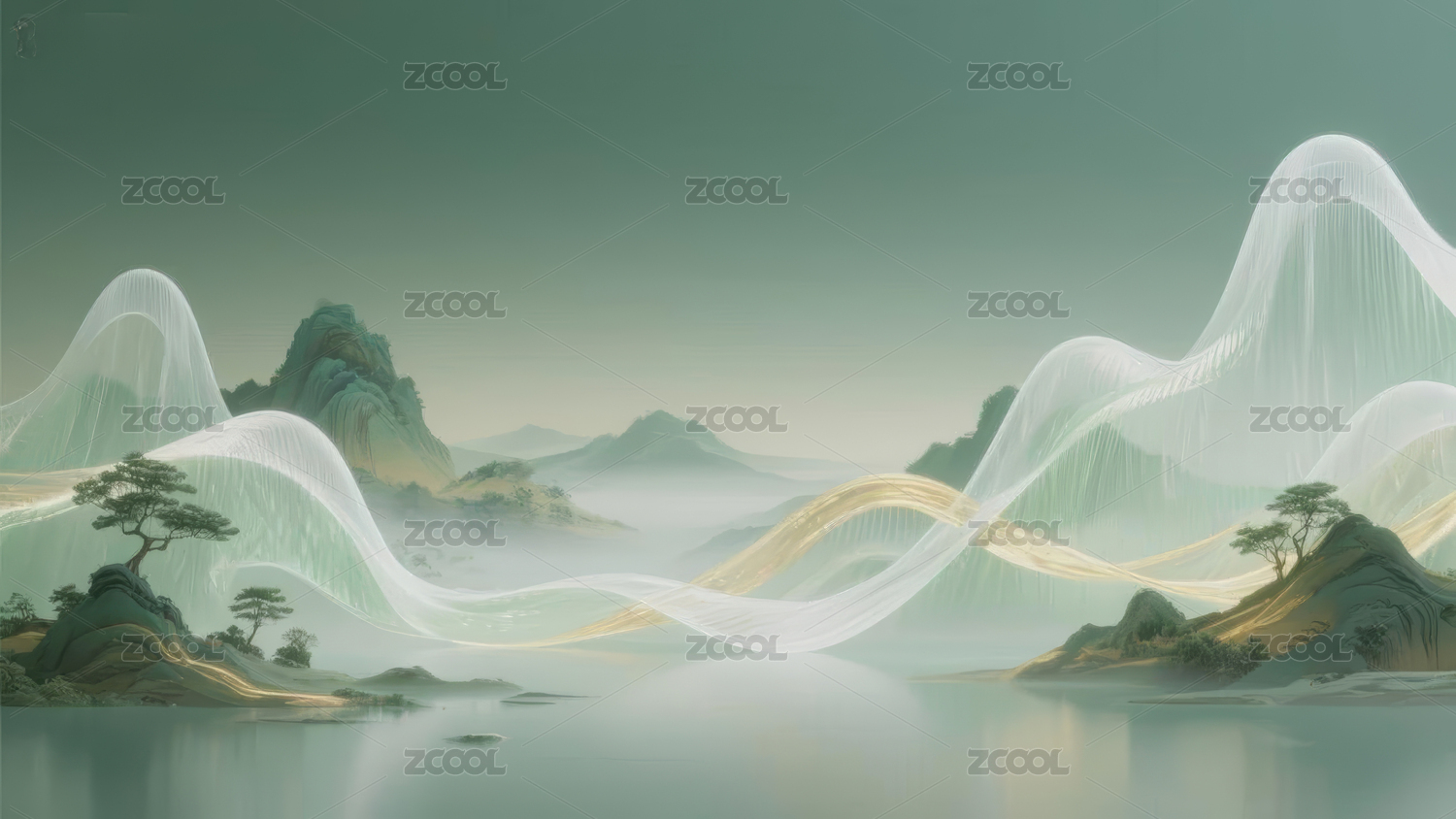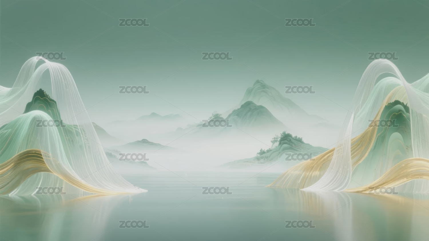 自然, 风景, 仙境, 幽静, 艺术, 宁静,山, 水, 云, 雾