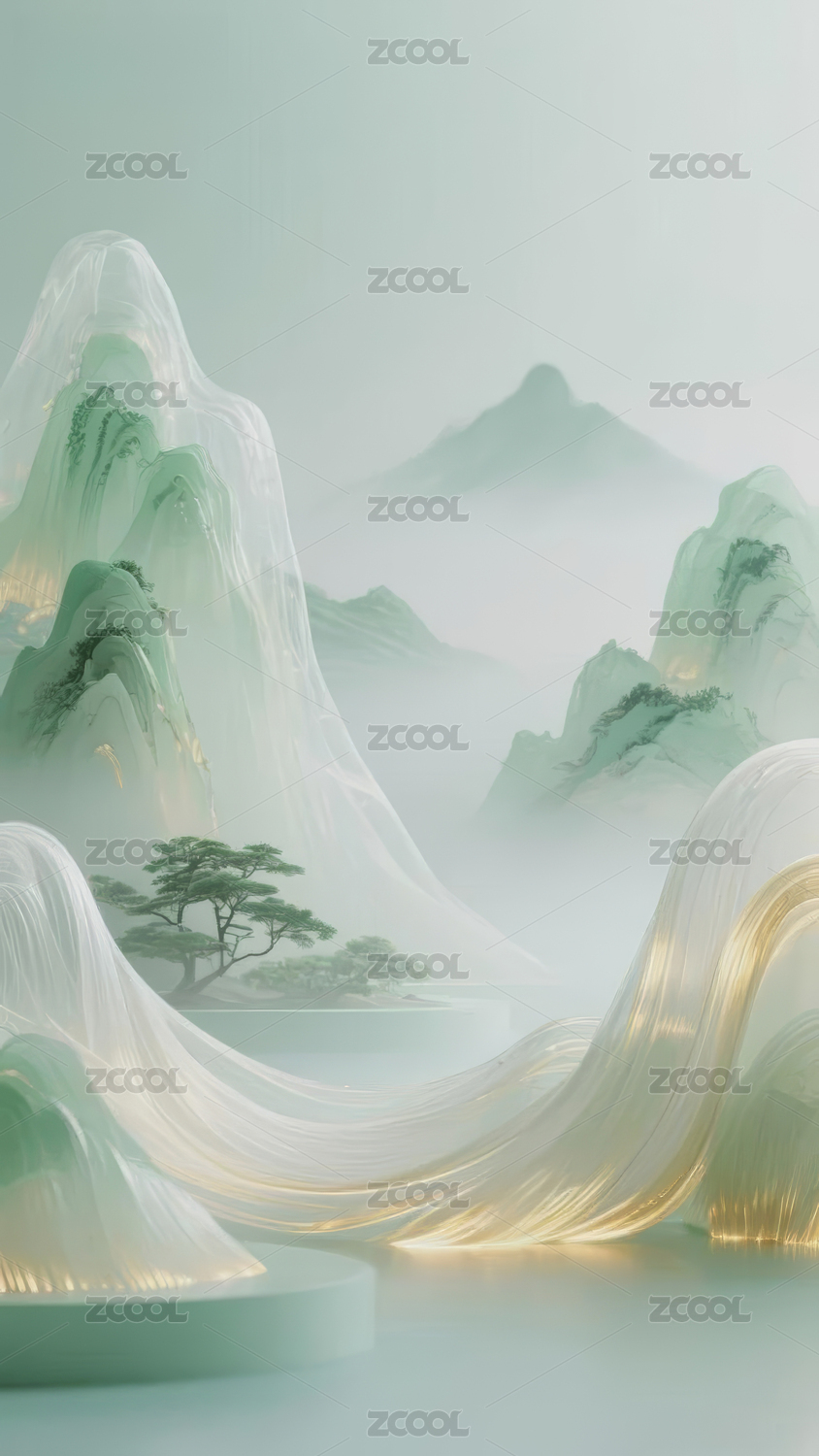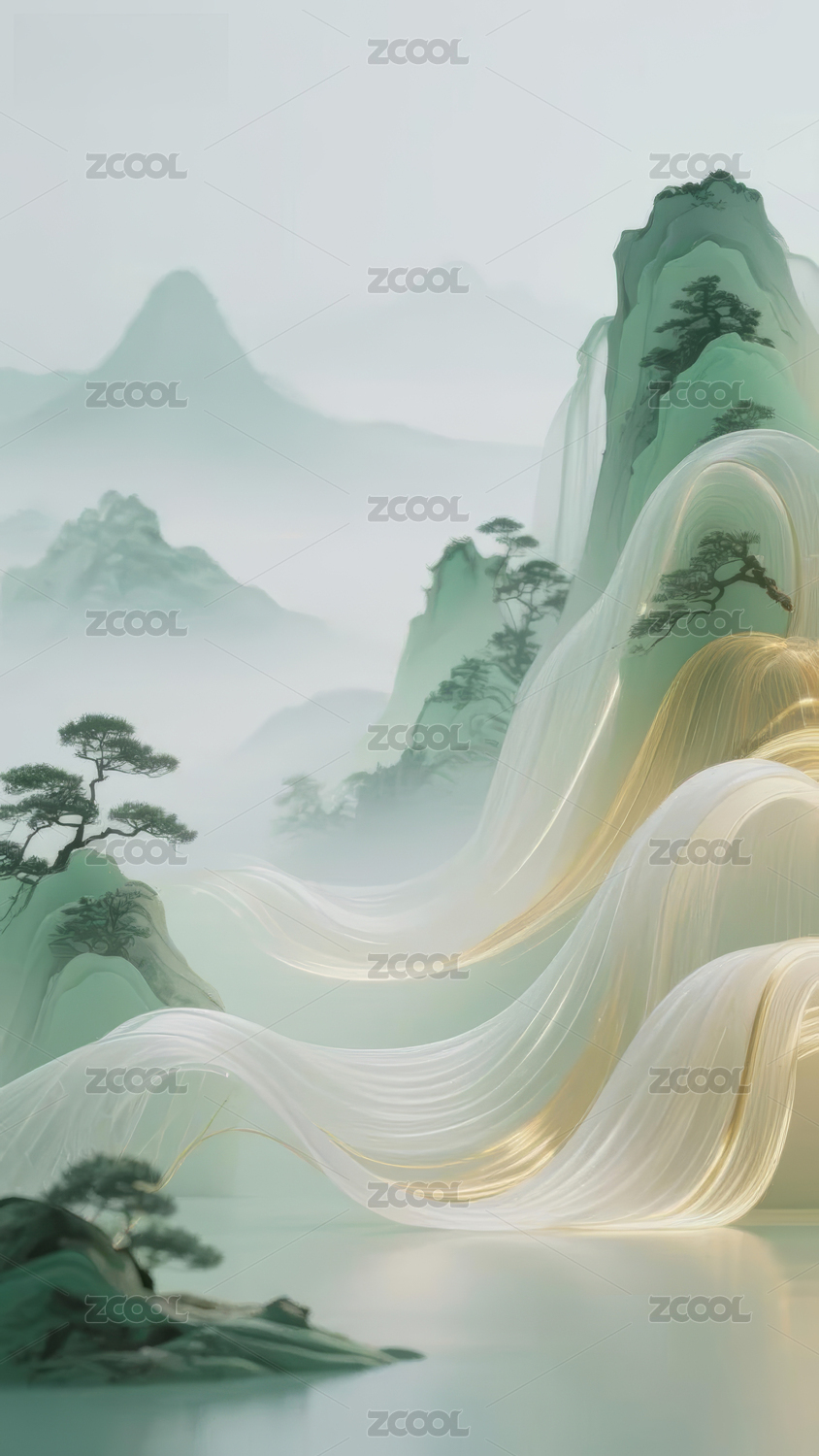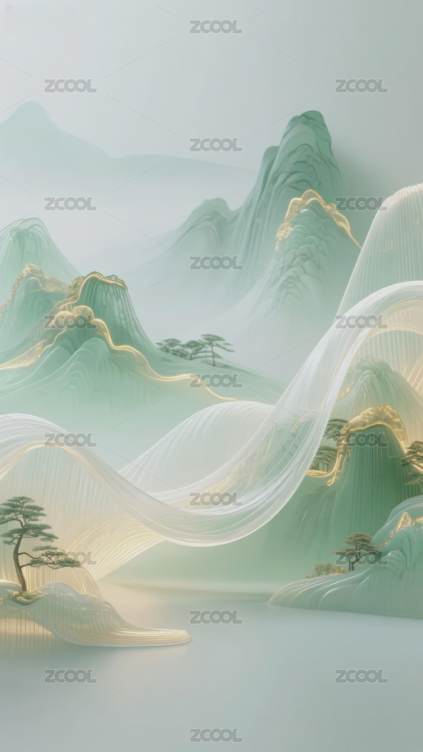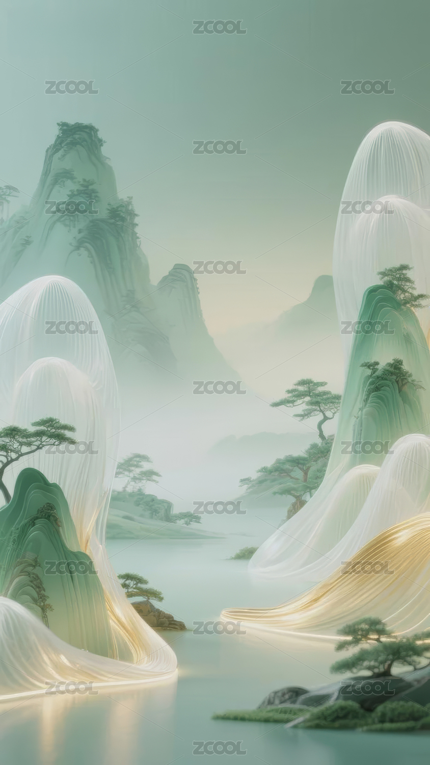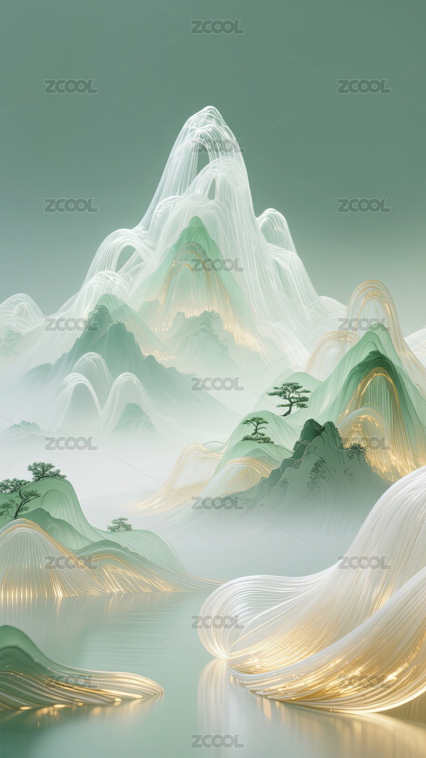 自然, 风景, 梦幻, 绿色, 艺术, 设计, 和谐, 宁静,山, 水