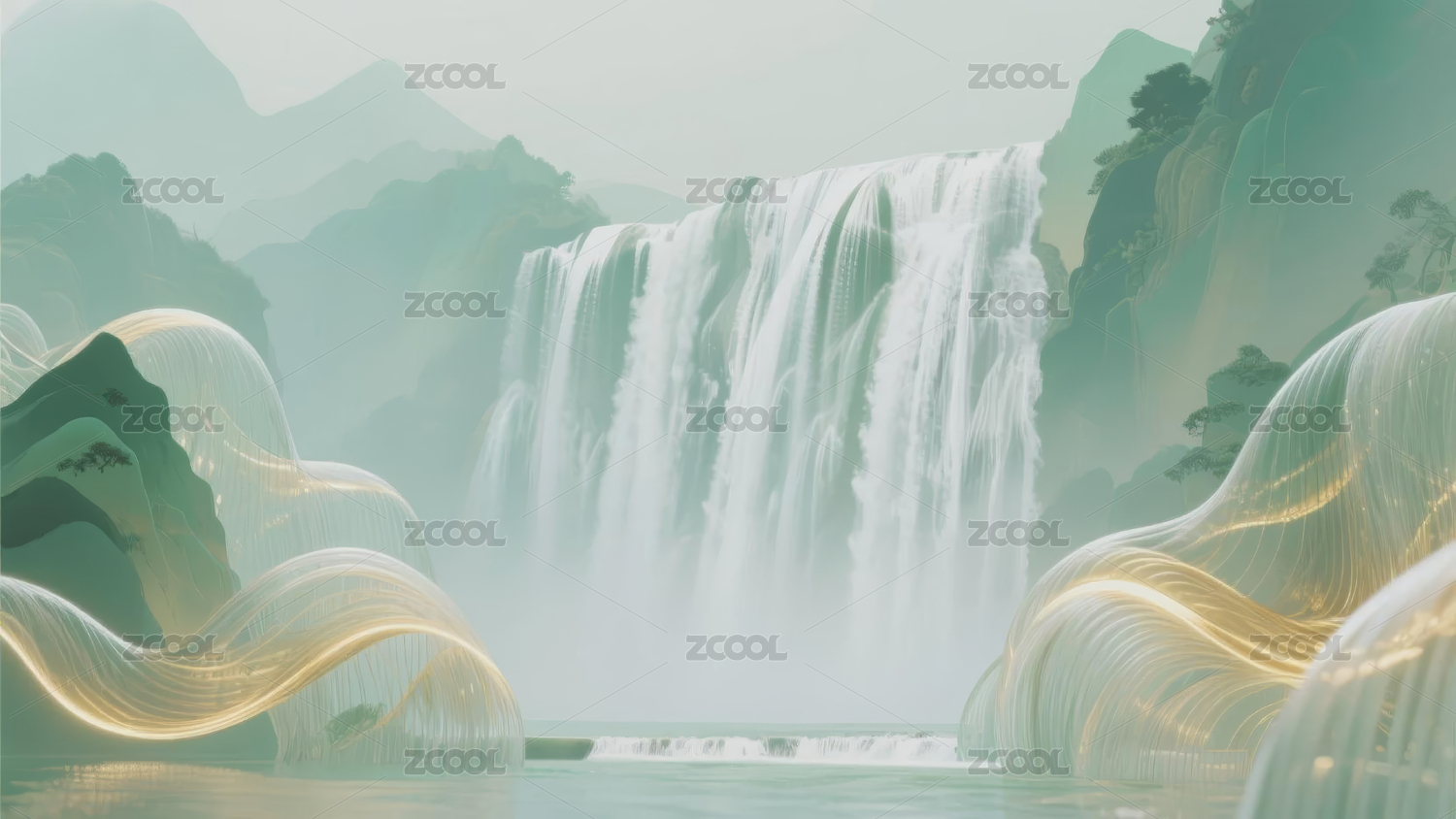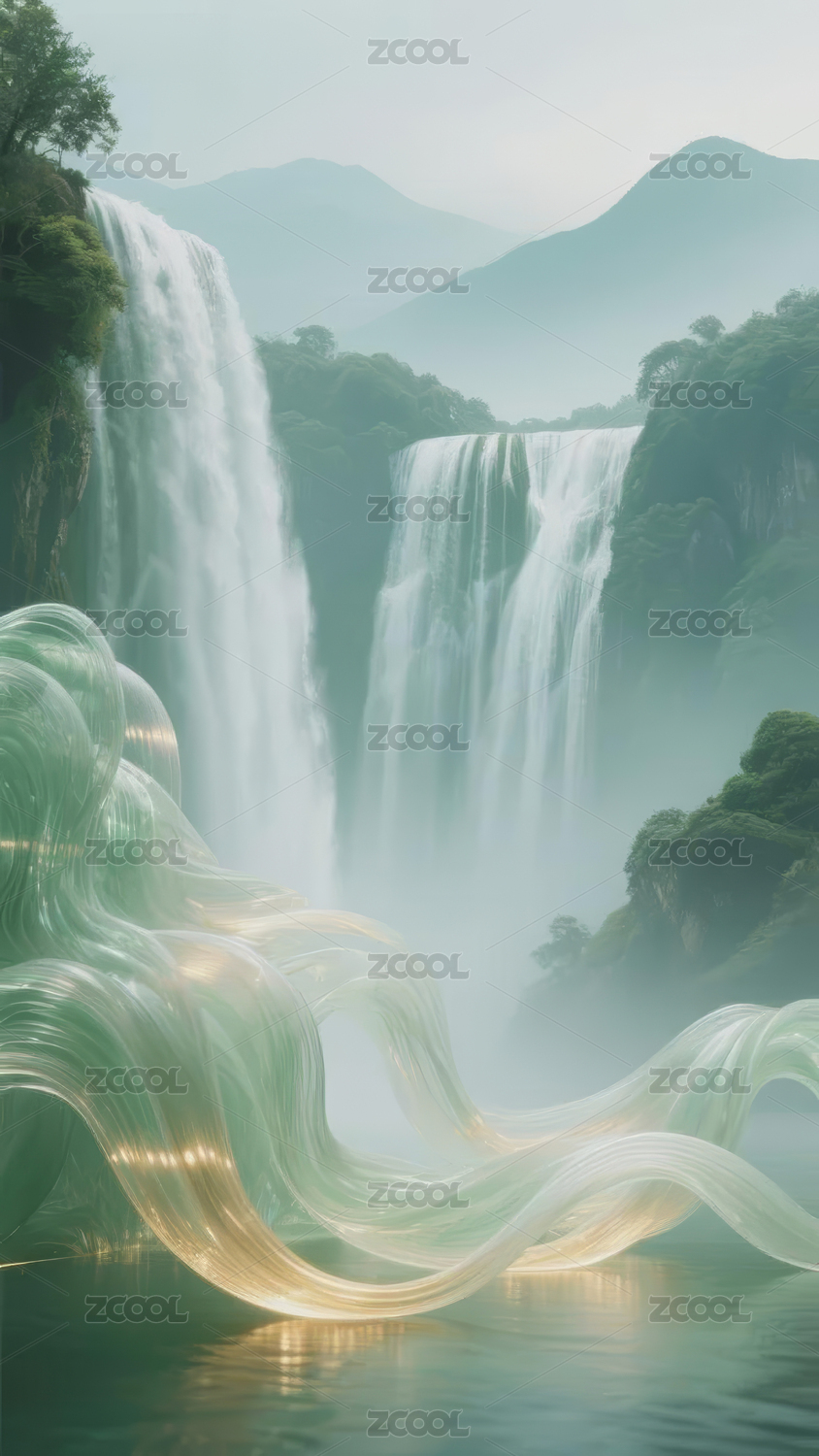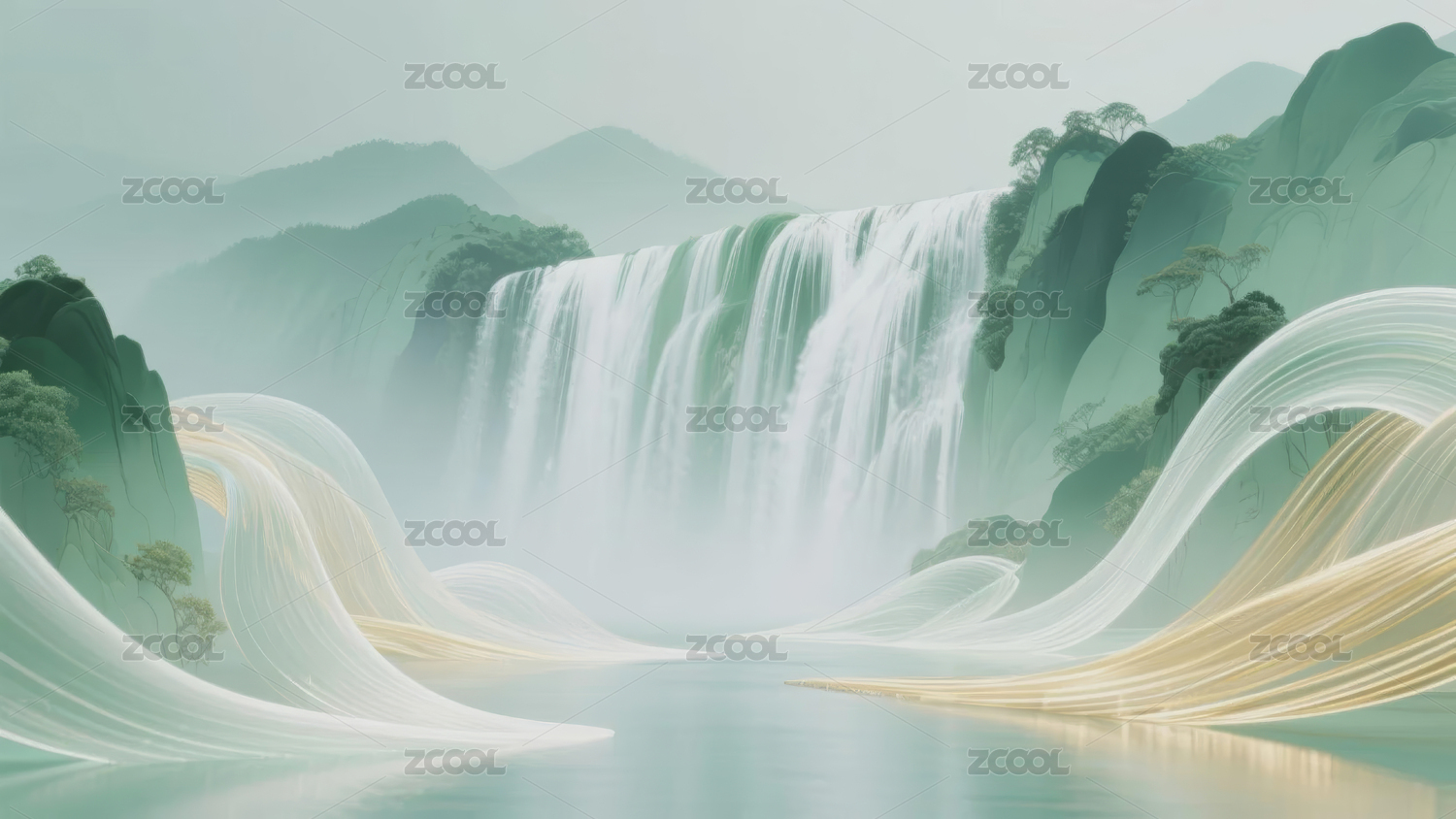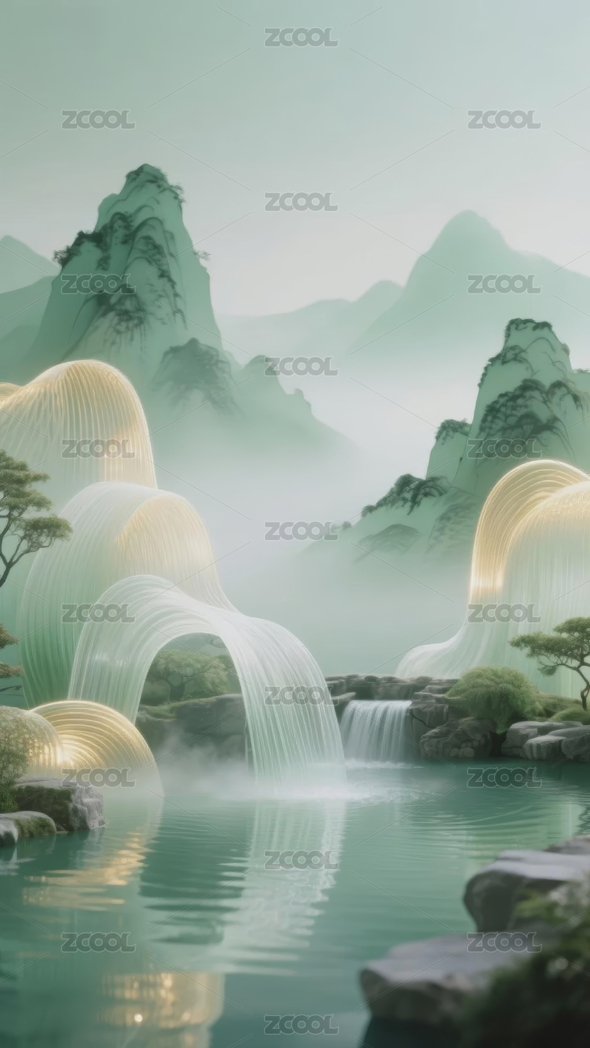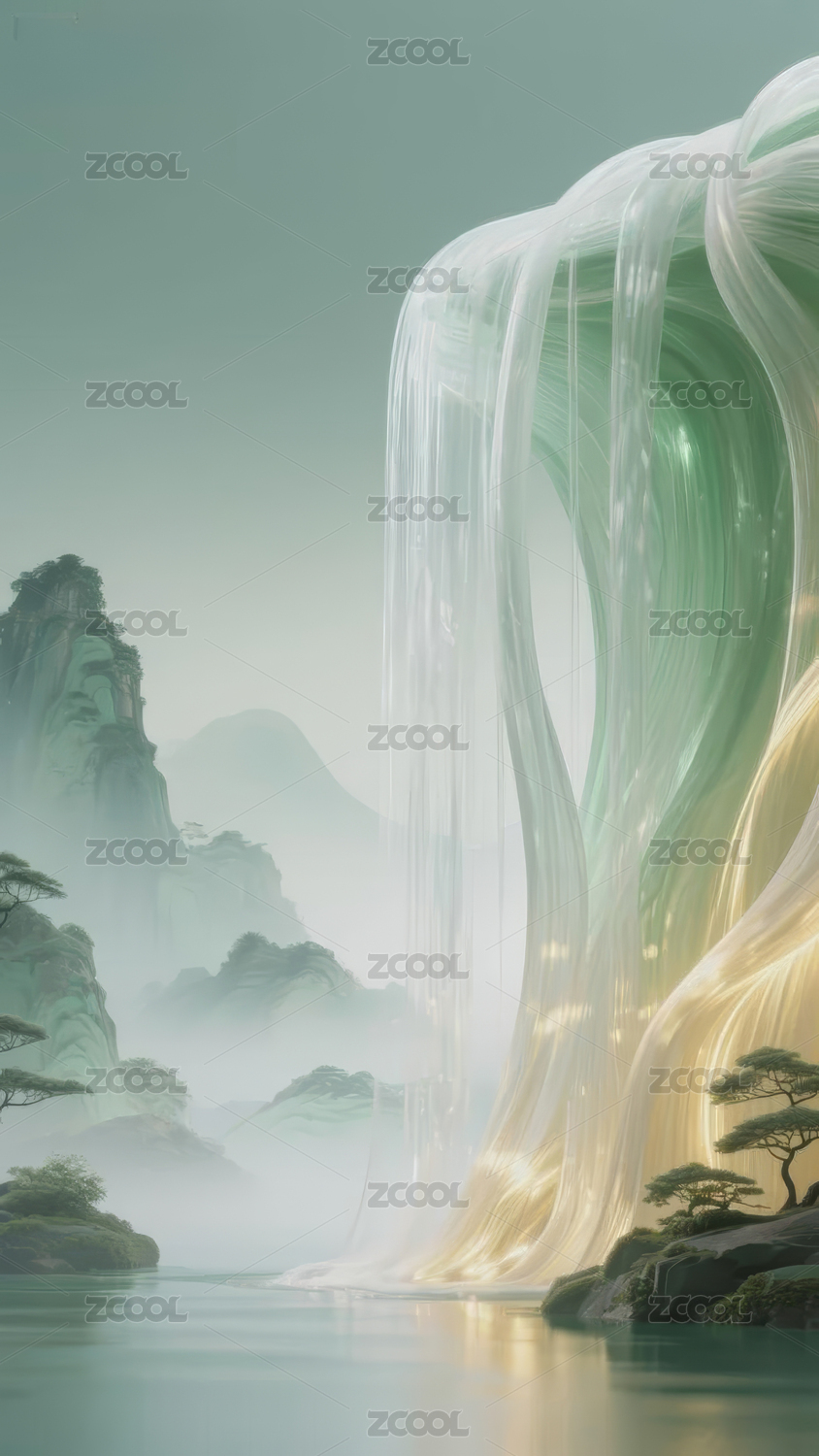 山水, 艺术, 自然, 传统, 云雾, 绿树, 风景, 和谐, 山峰, 河流