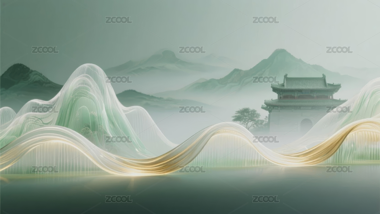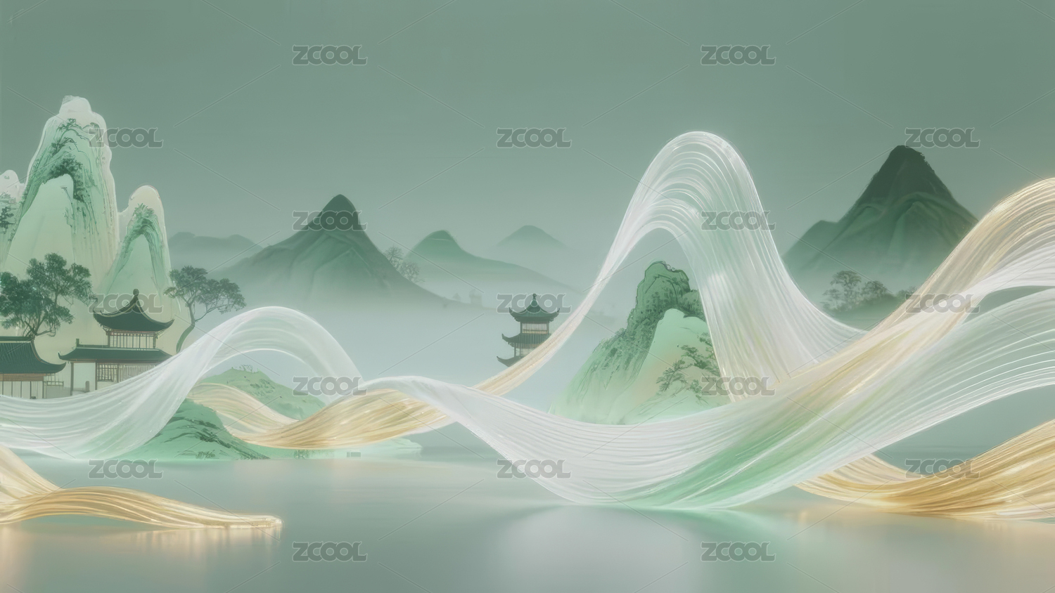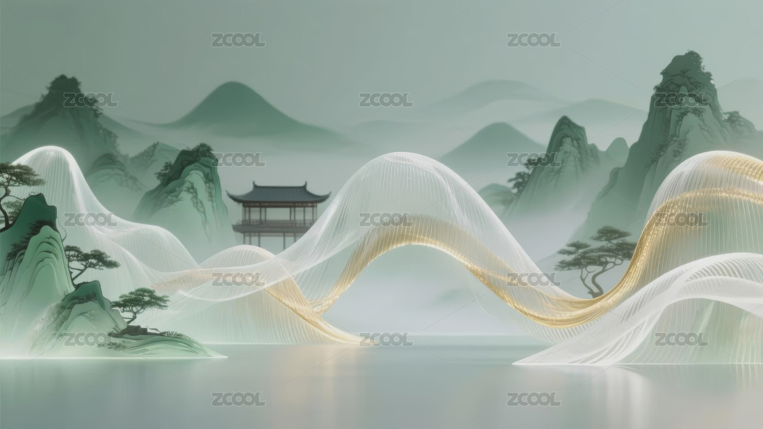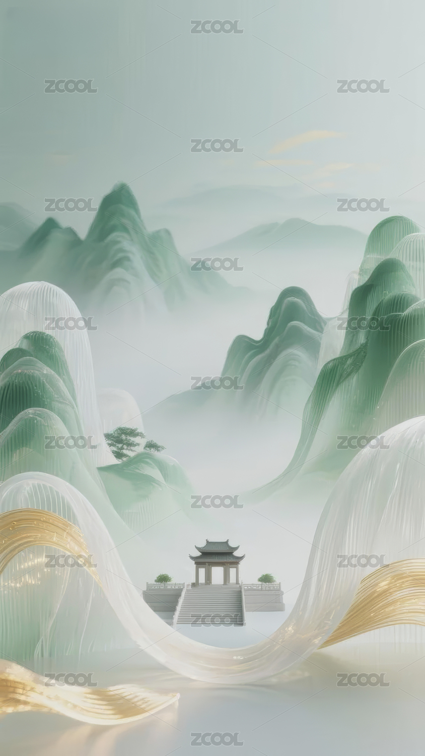 艺术, 自然, 文化, 传统, 风景, 和谐, 东方,山, 水, 云