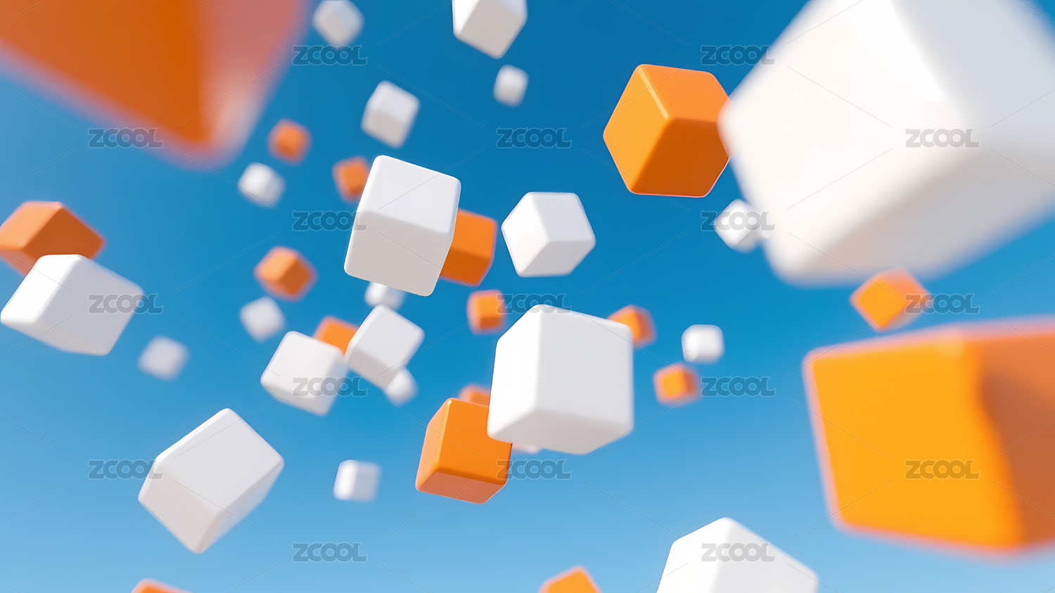 动态橙白漂浮立方体