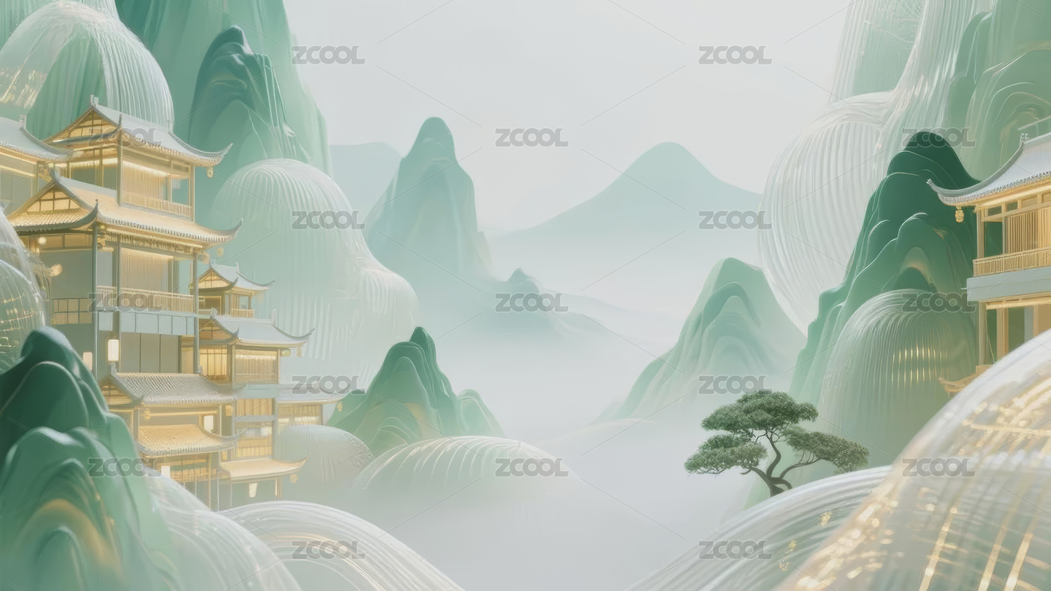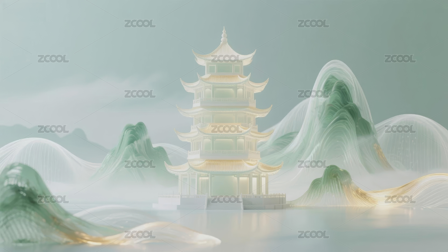 云雾, 山峰, 宁静, 自然, 和谐, 艺术,山水, 楼阁, 绿色, 建筑
