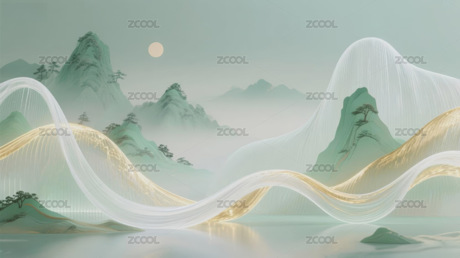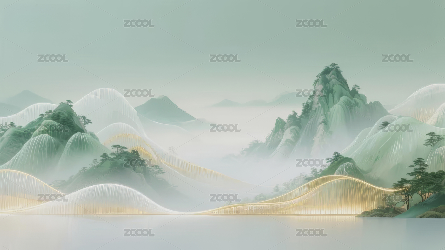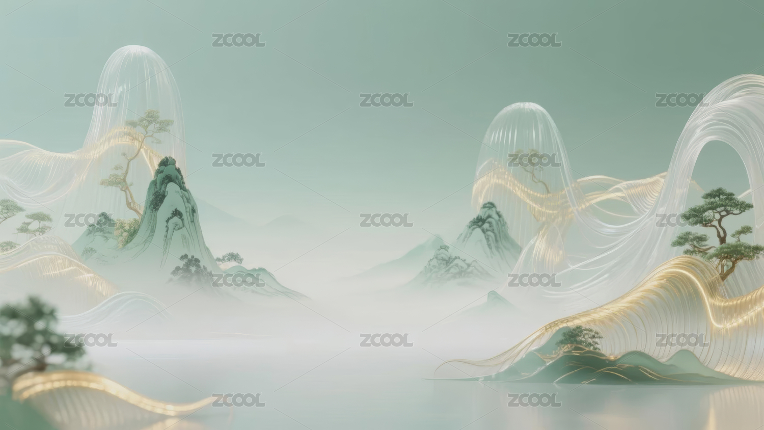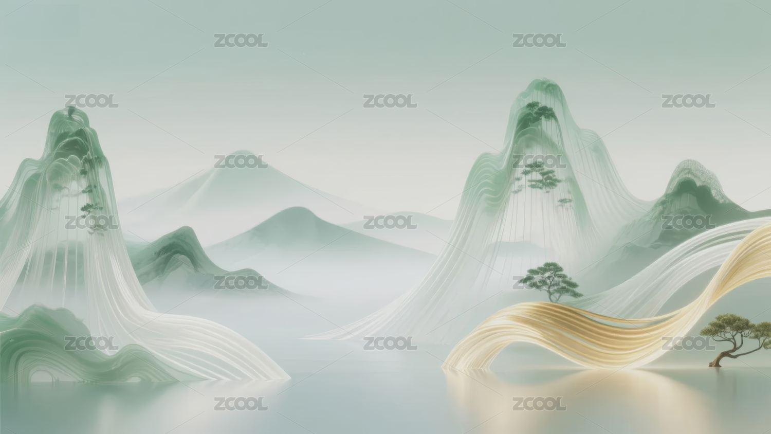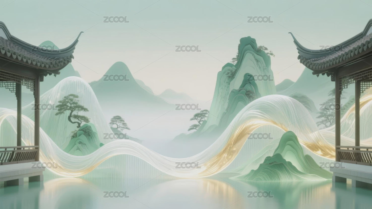 自然, 和谐, 意境, 艺术, 背景, 清新,山水, 建筑, 设计, 东方