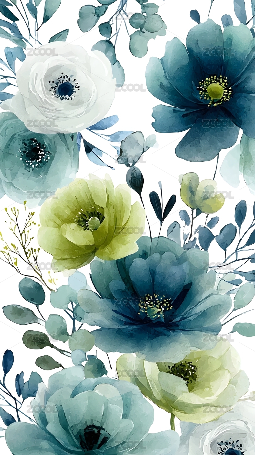 装饰,背景,绿色,植物,蓝色,白色,叶子,图案,设计,艺术