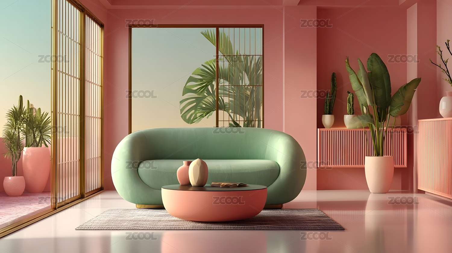 粉色沙发与仙人掌 简约拱门下的温馨氛围