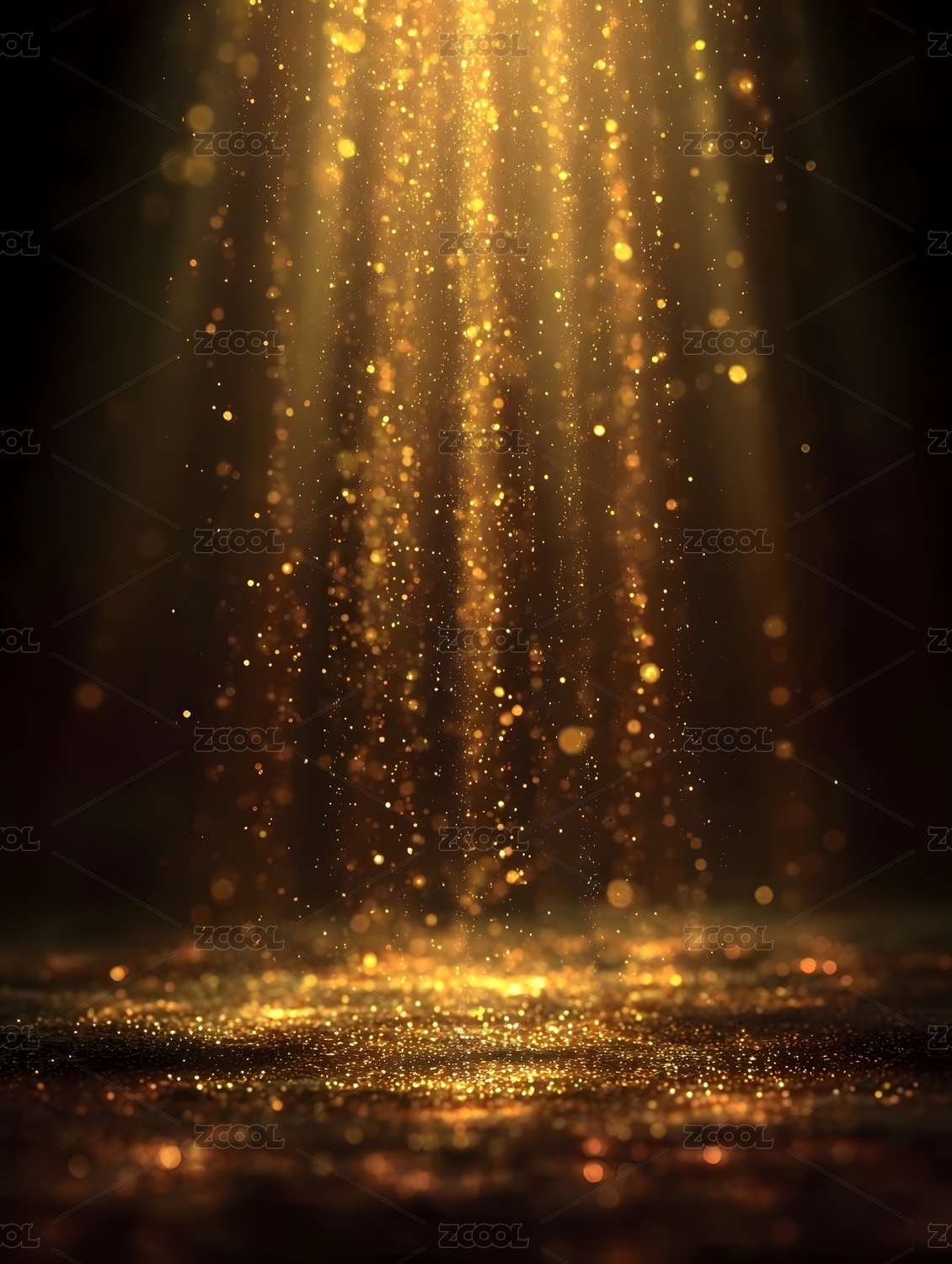 黑色背景下洒落的金色光束与光斑