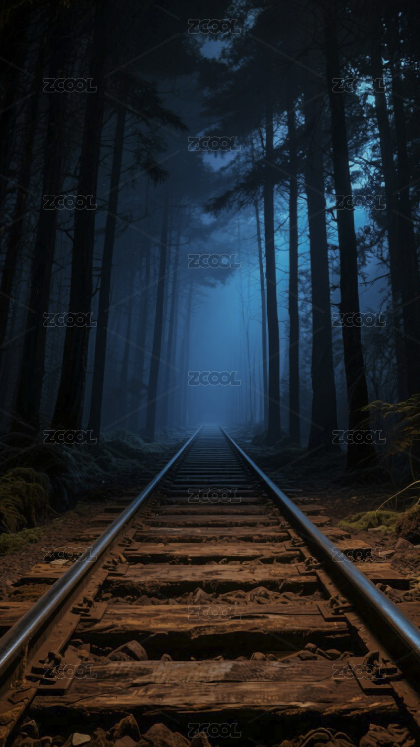 铁轨,森林,雾,幽暗,树木,延伸,远方,寂静,神秘,孤独