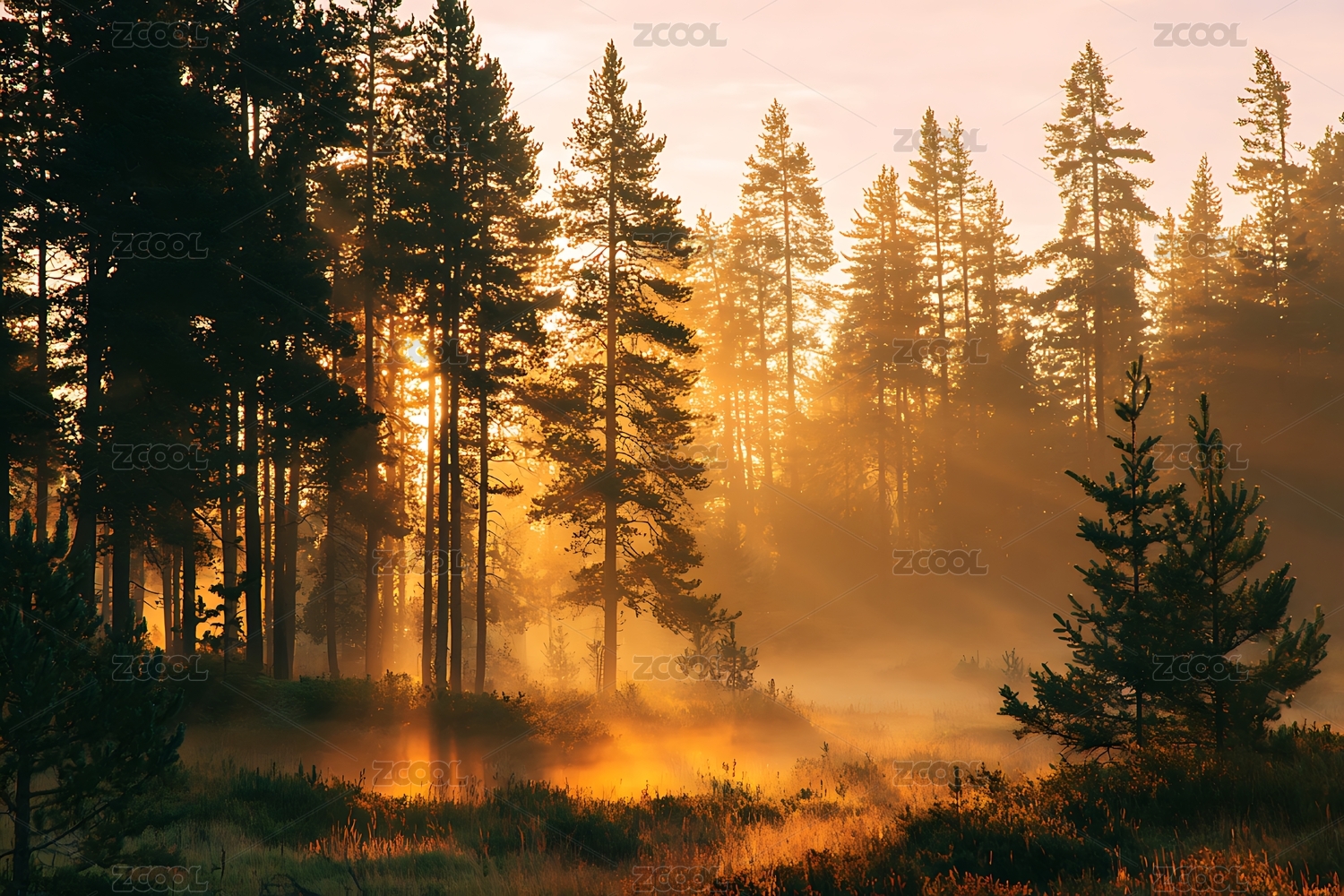 森林,树木,雾,晨曦,阳光,自然,静谧,神秘,光线,树林