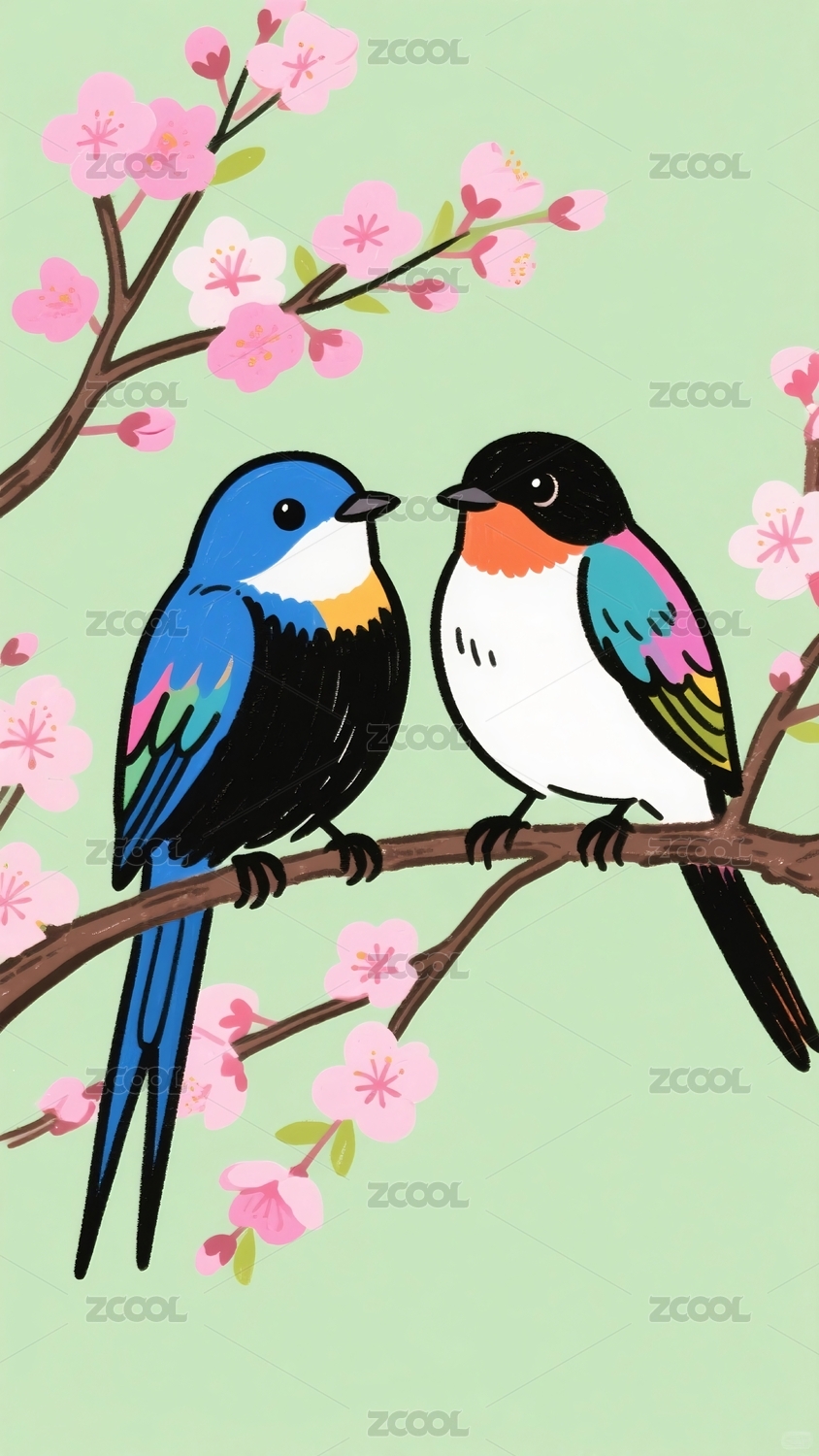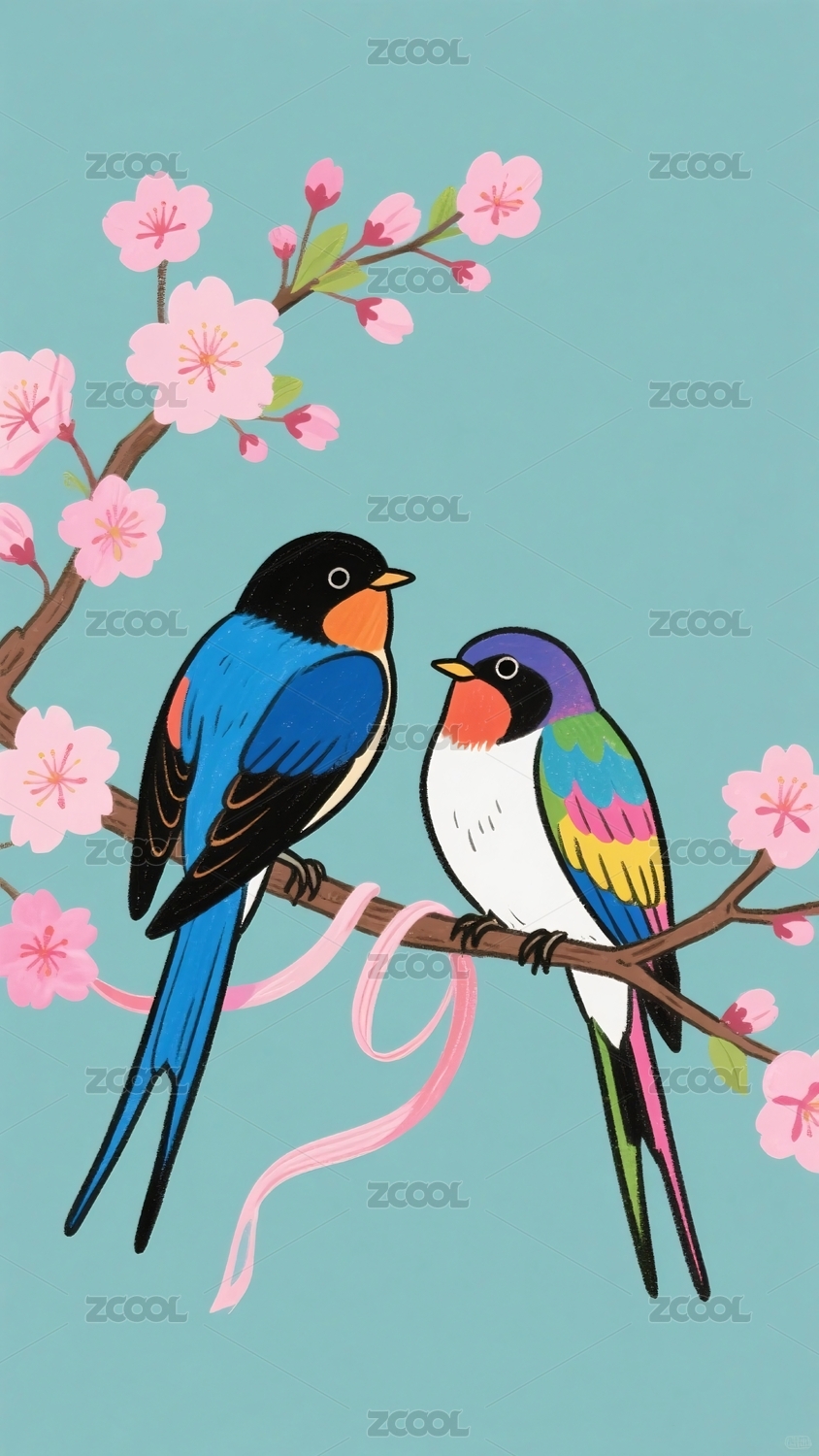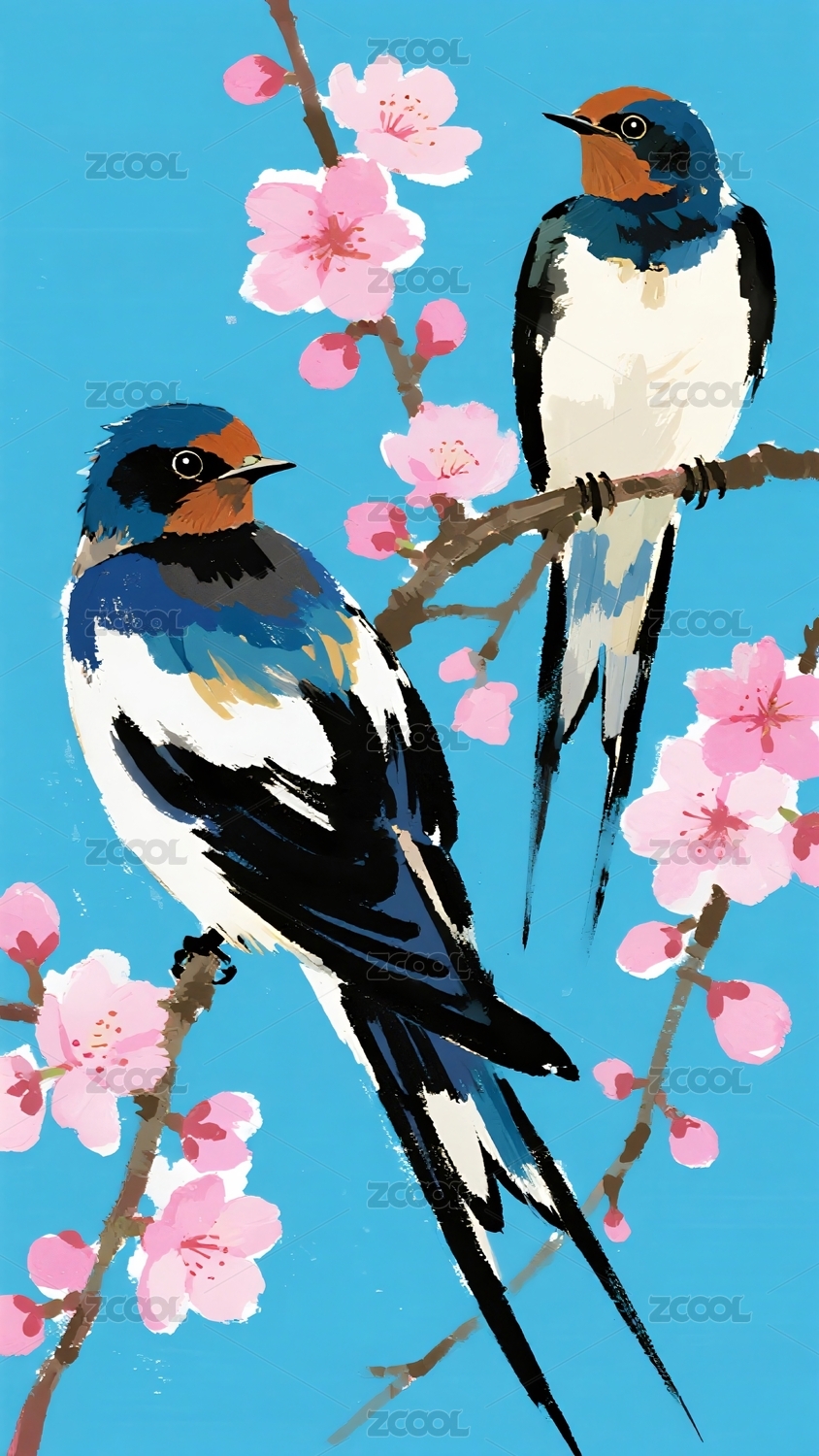 自然,可爱,白色,黑色,花朵,生活,美丽,鸟儿,粉色,鲜艳