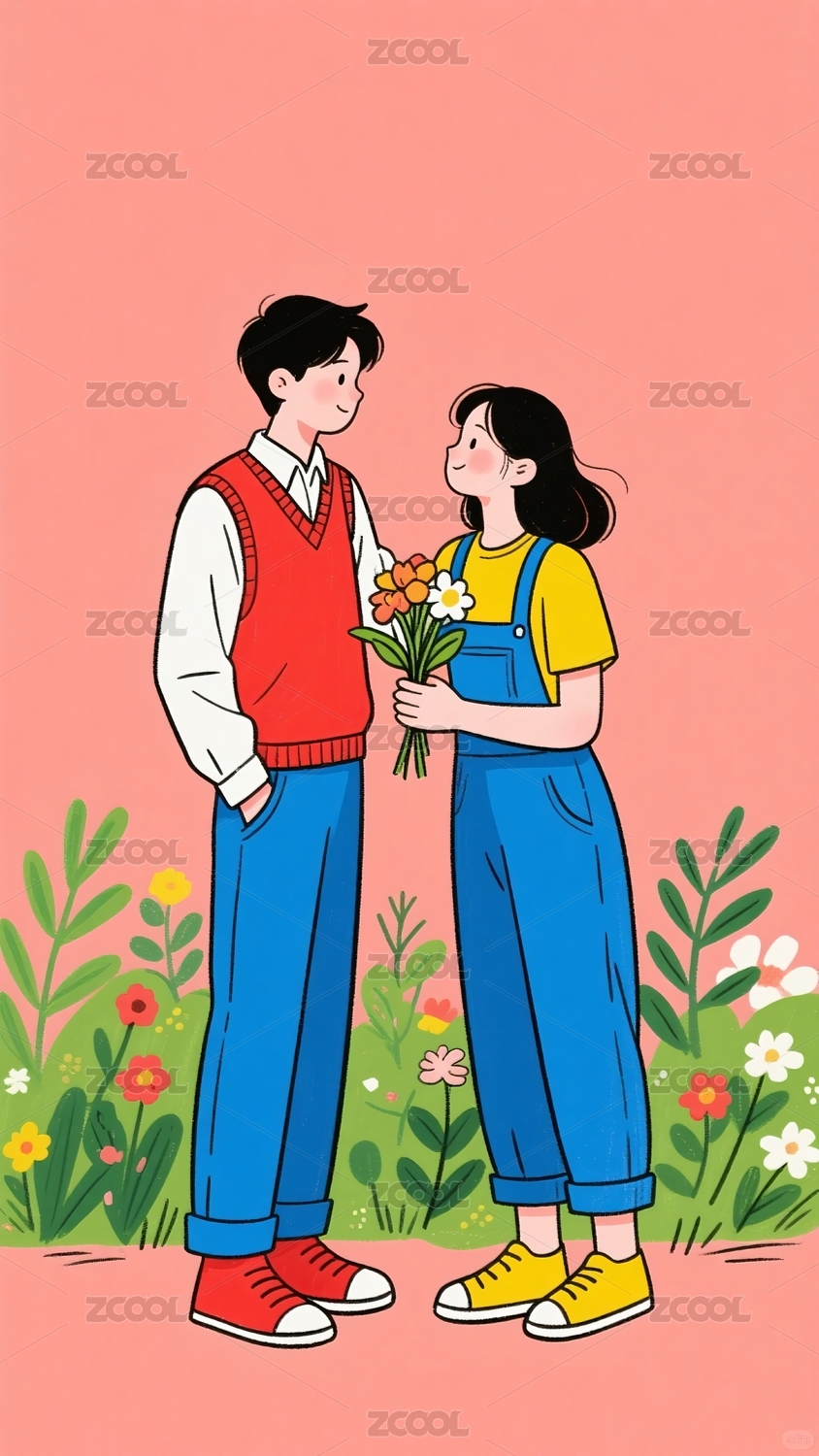 情侣,拥抱,微笑,鲜花,开心,站立,人物,女孩,男孩,外套