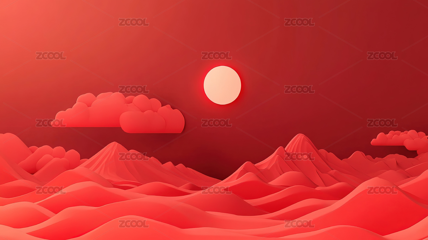 红色背景下的云朵