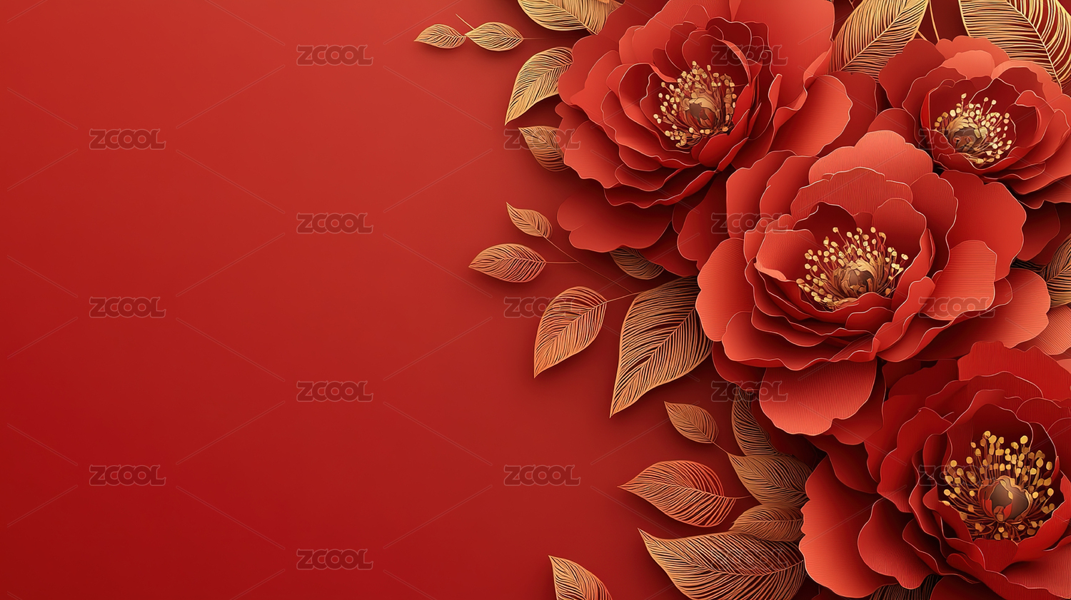 新年红色牡丹绽放主题背景